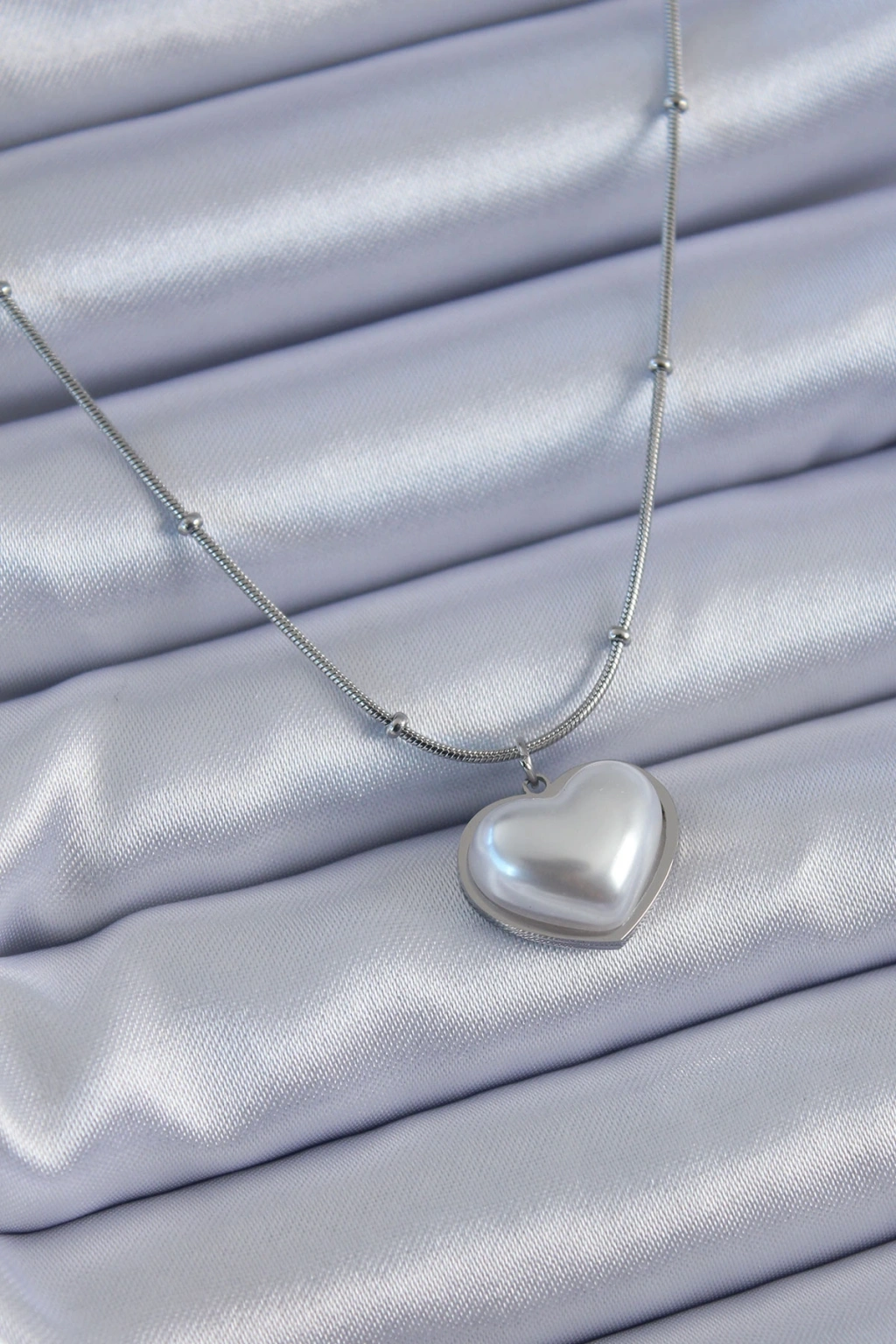 316l Çelik Gümüş Renk İncili Kalp Model Minimal Top Detay Kadın Kolye