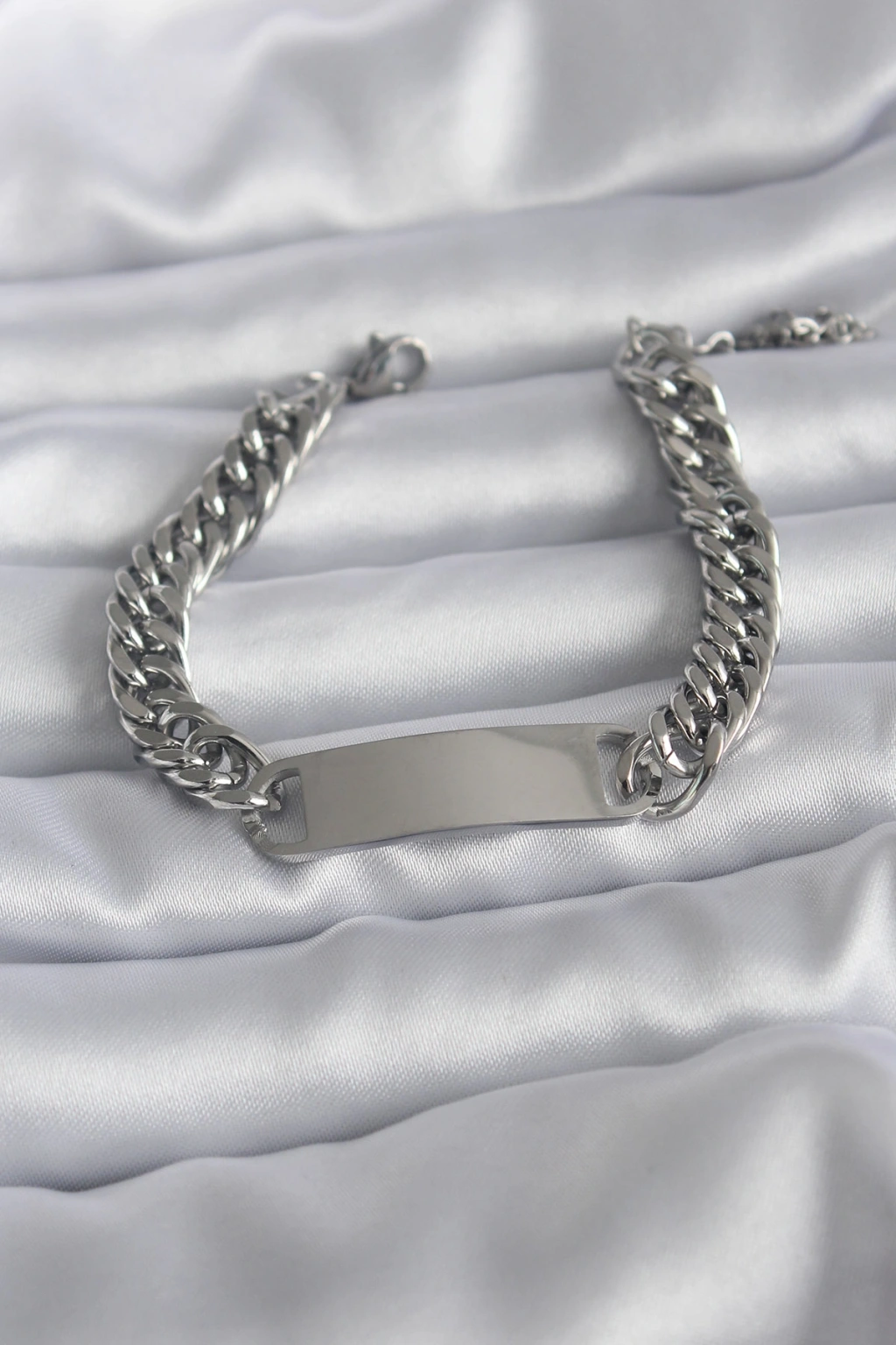 316L Çelik Gümüş Renk İsim Yazılabilir Plaka Model Kadın Bileklik