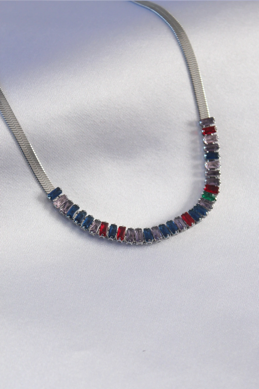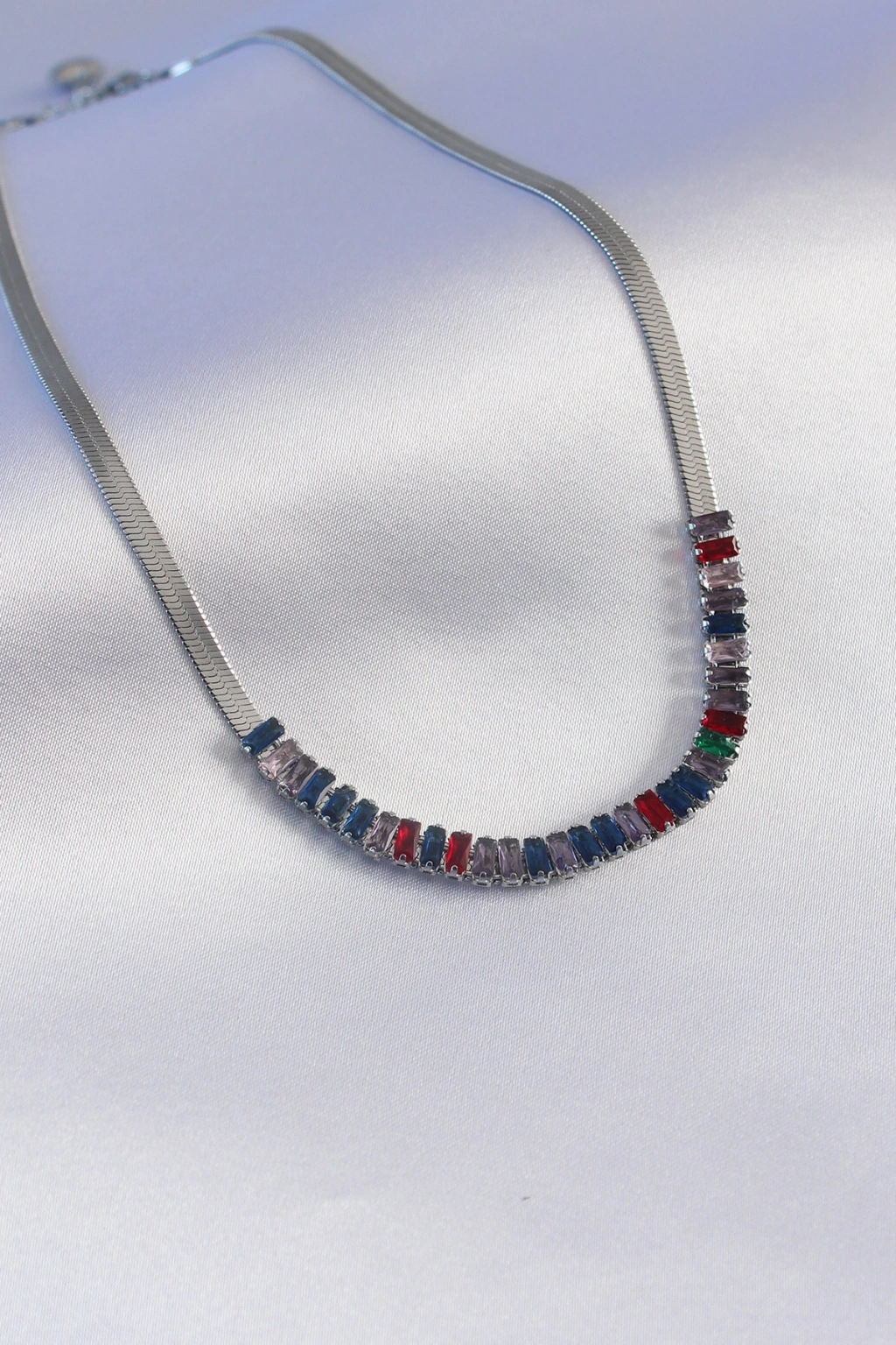 316l Çelik Gümüş Renk İtalyan Zincir Model Renkli Zirkon Taşlı Kadın Kolye