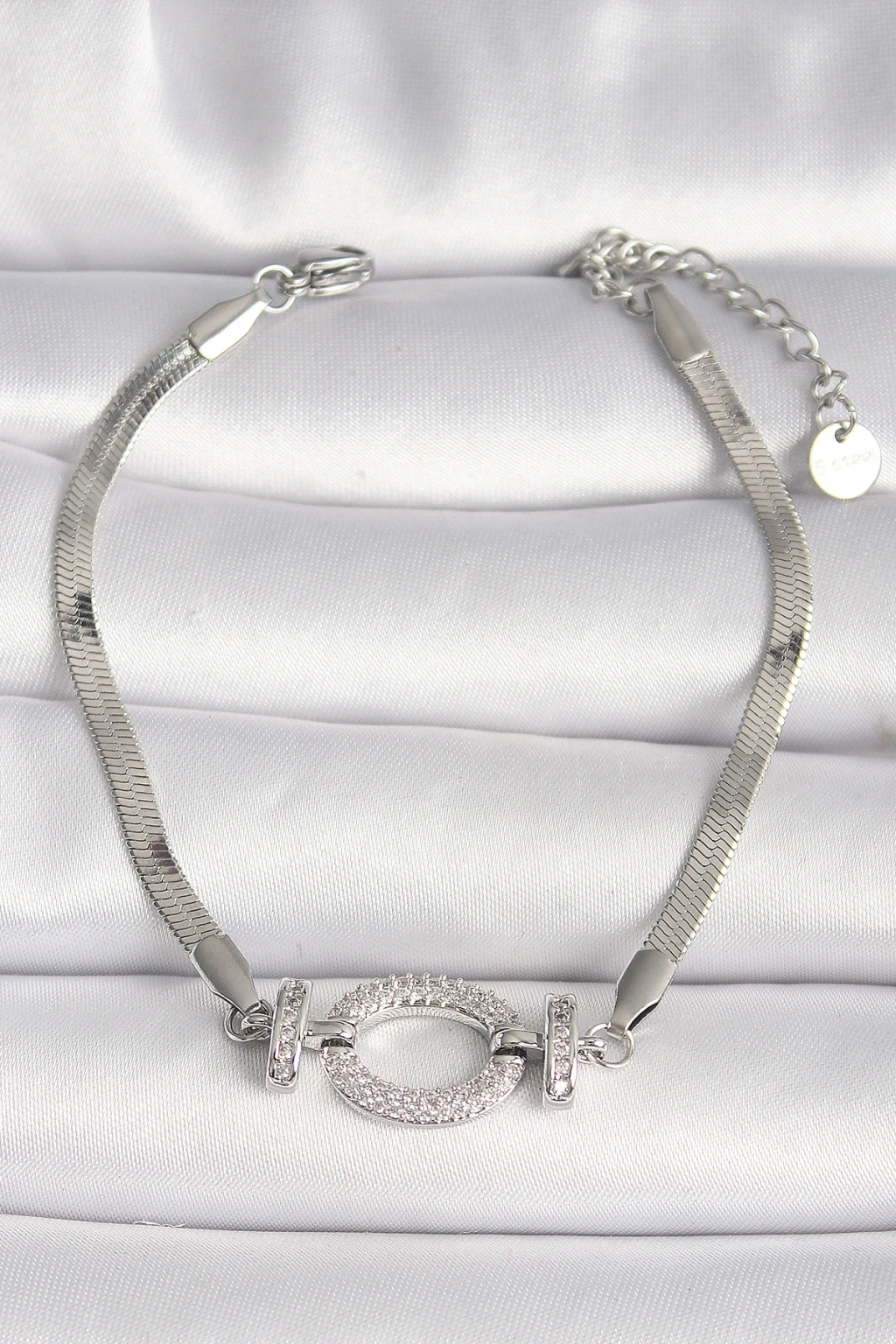 316l Çelik Gümüş Renk İtalyan Zincir Model Zirkon Taşlı Halka Figür Kadın Bileklik