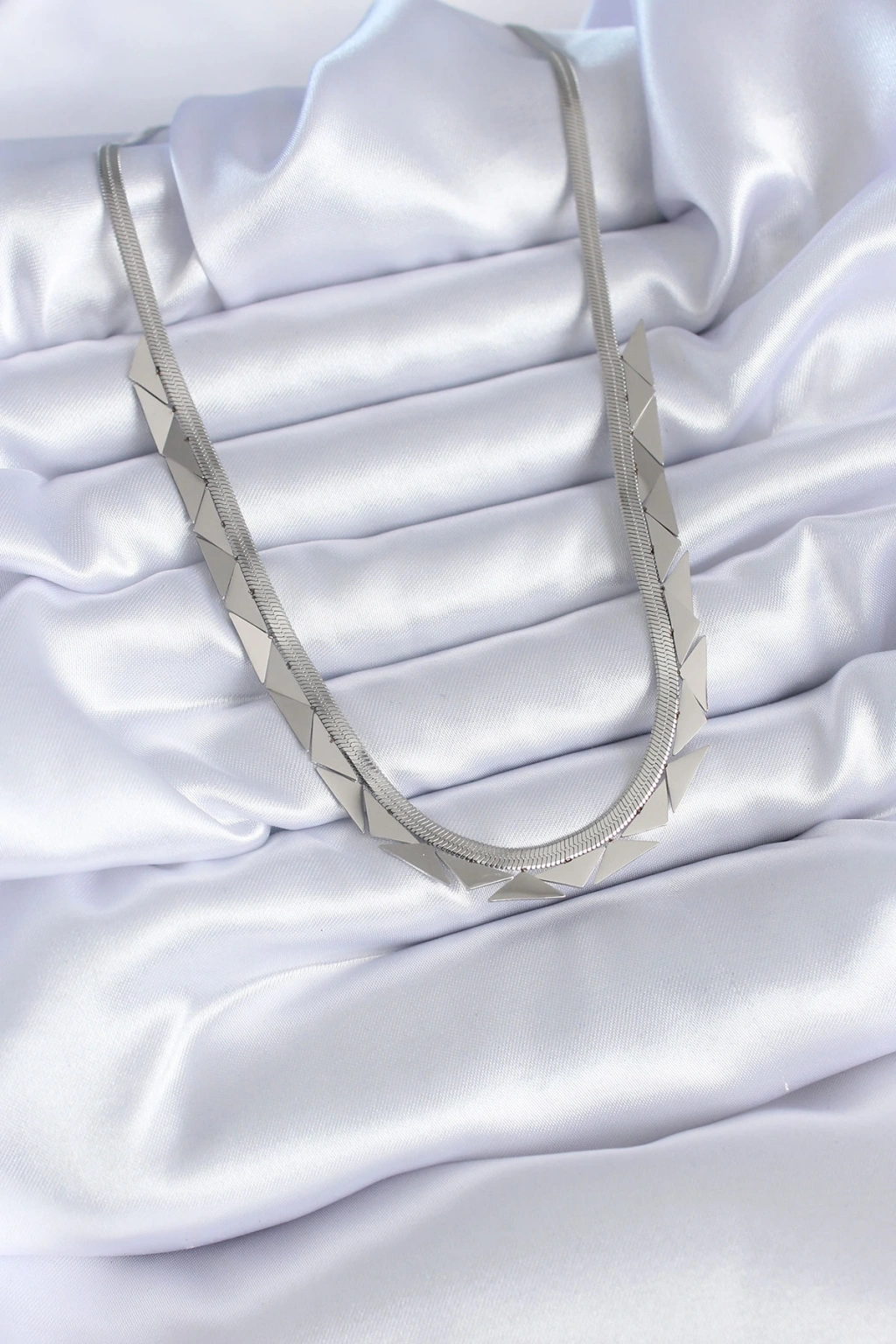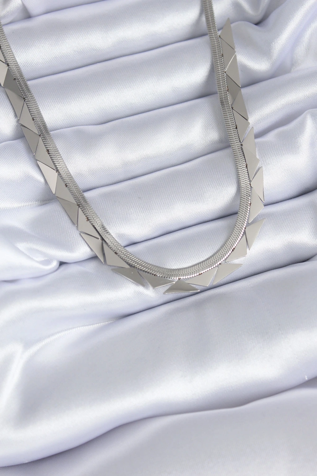 316l Çelik Gümüş Renk İtalyan Zincir Üçgen Model Kadın Kolye