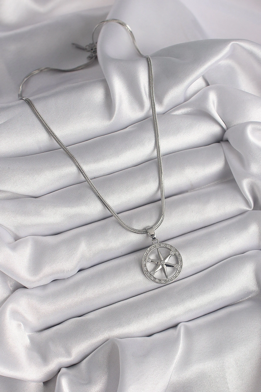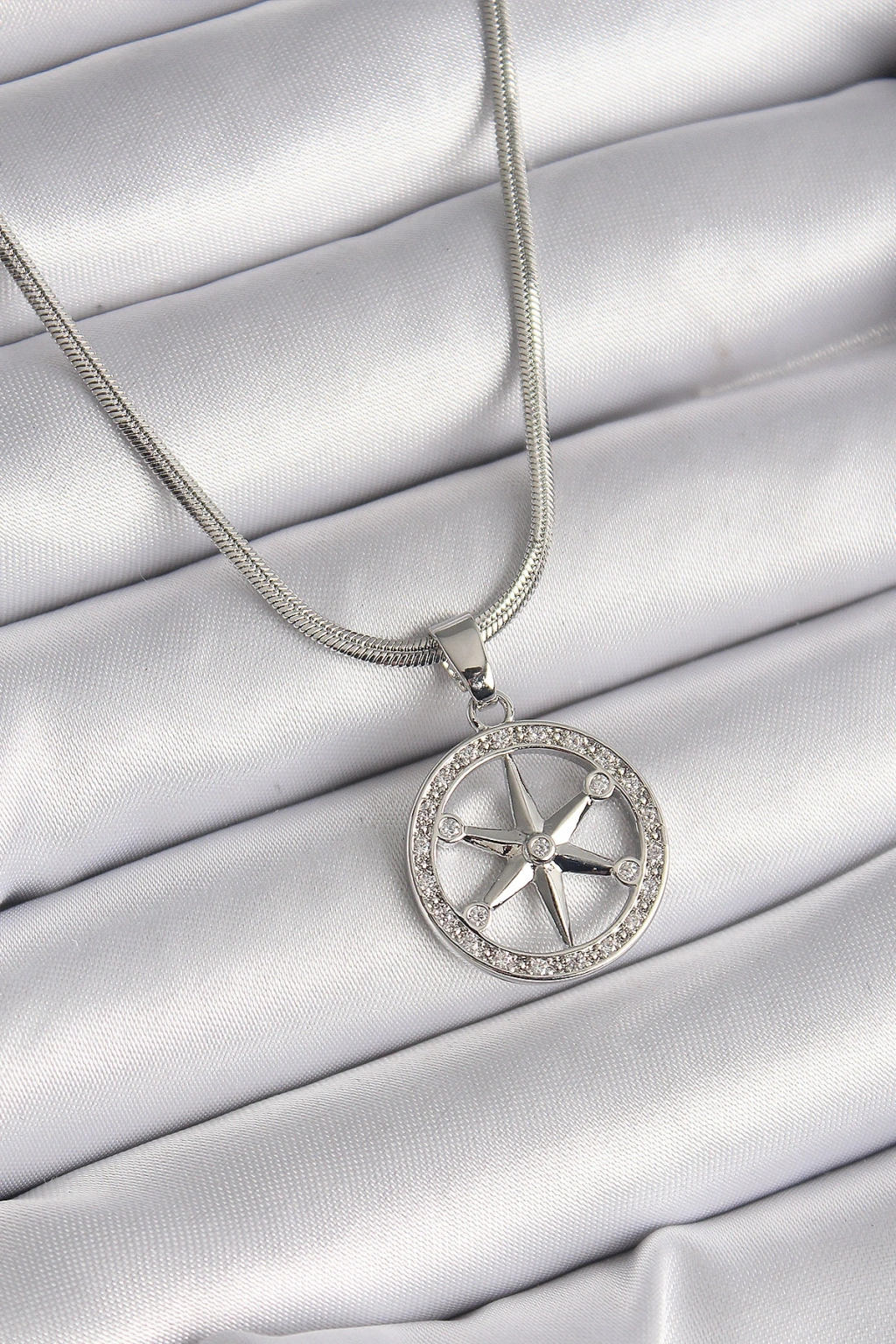 316l Çelik Gümüş Renk İtalyan Zincir Zirkon Taşlı Kutup Yıldız Model Kadın Kolye