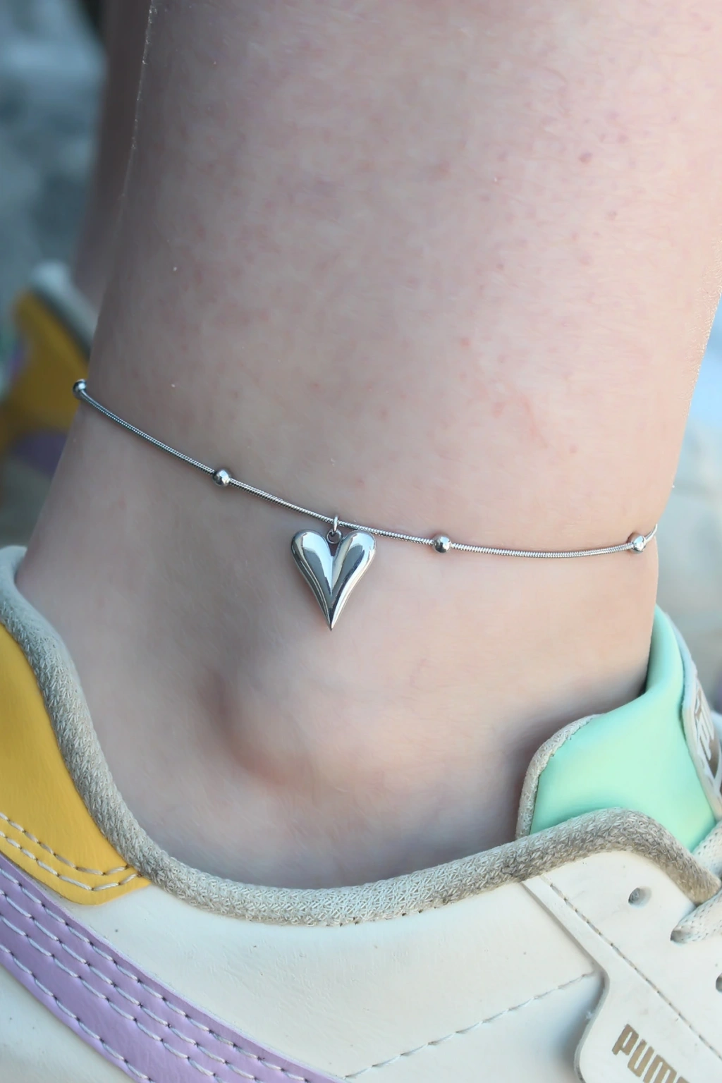 316l Çelik Gümüş Renk Kalp Figür Kadın Halhal