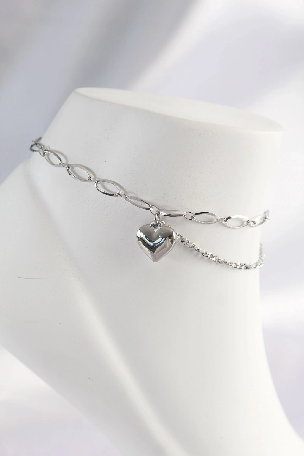 316L Çelik Gümüş Renk Kalp Figür Kadın Halhal