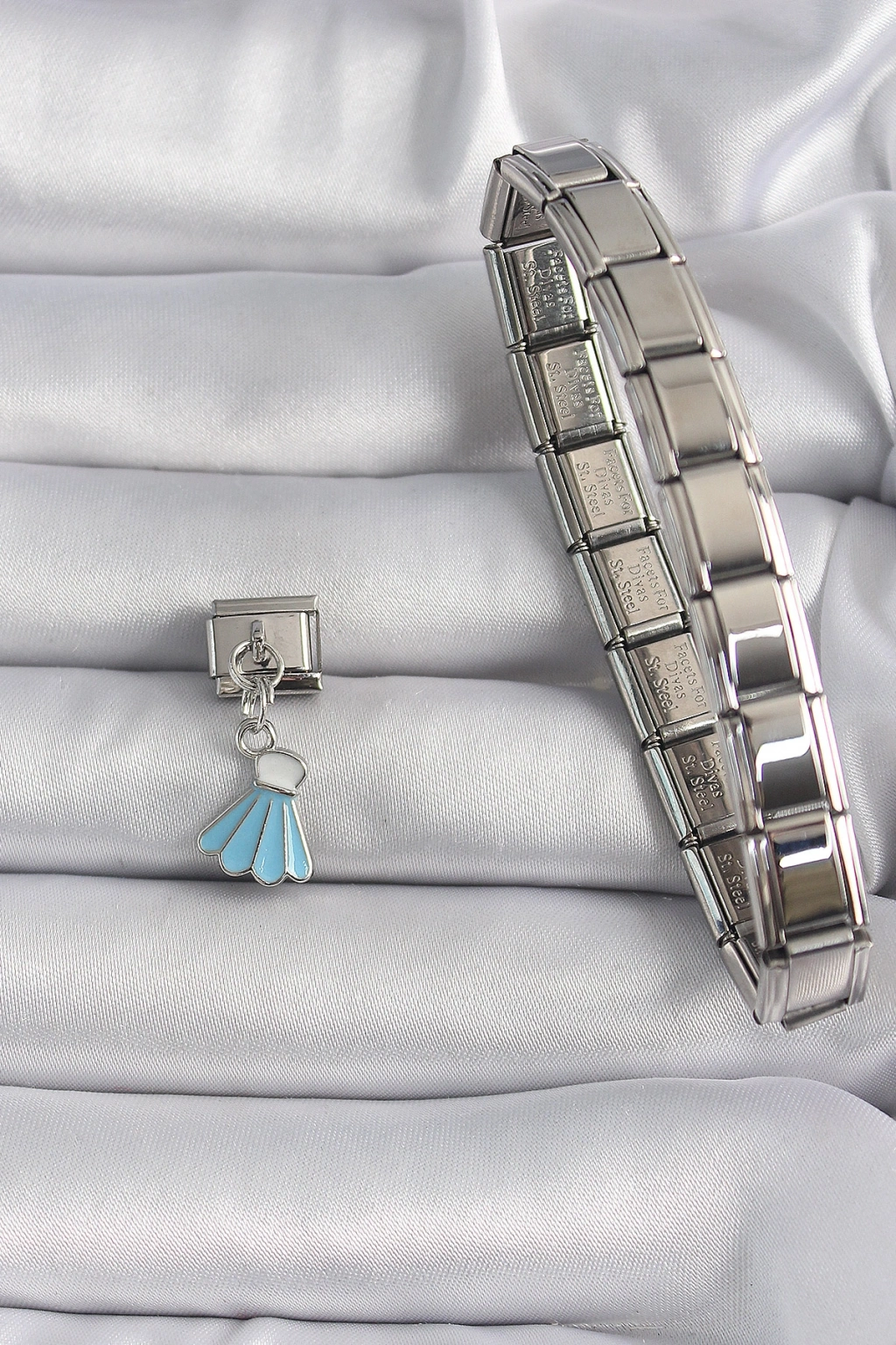 316L Çelik Gümüş Renk Mavi Renk Sallantı Elbise Model Nomination Charm
