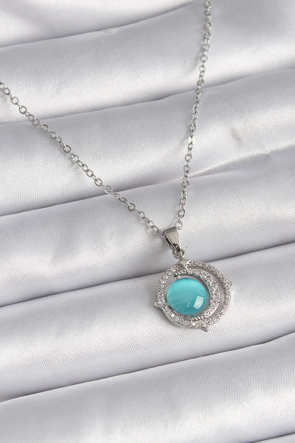 316l Çelik Gümüş Renk Mavi Sedefli Hilal Model Kadın Kolye