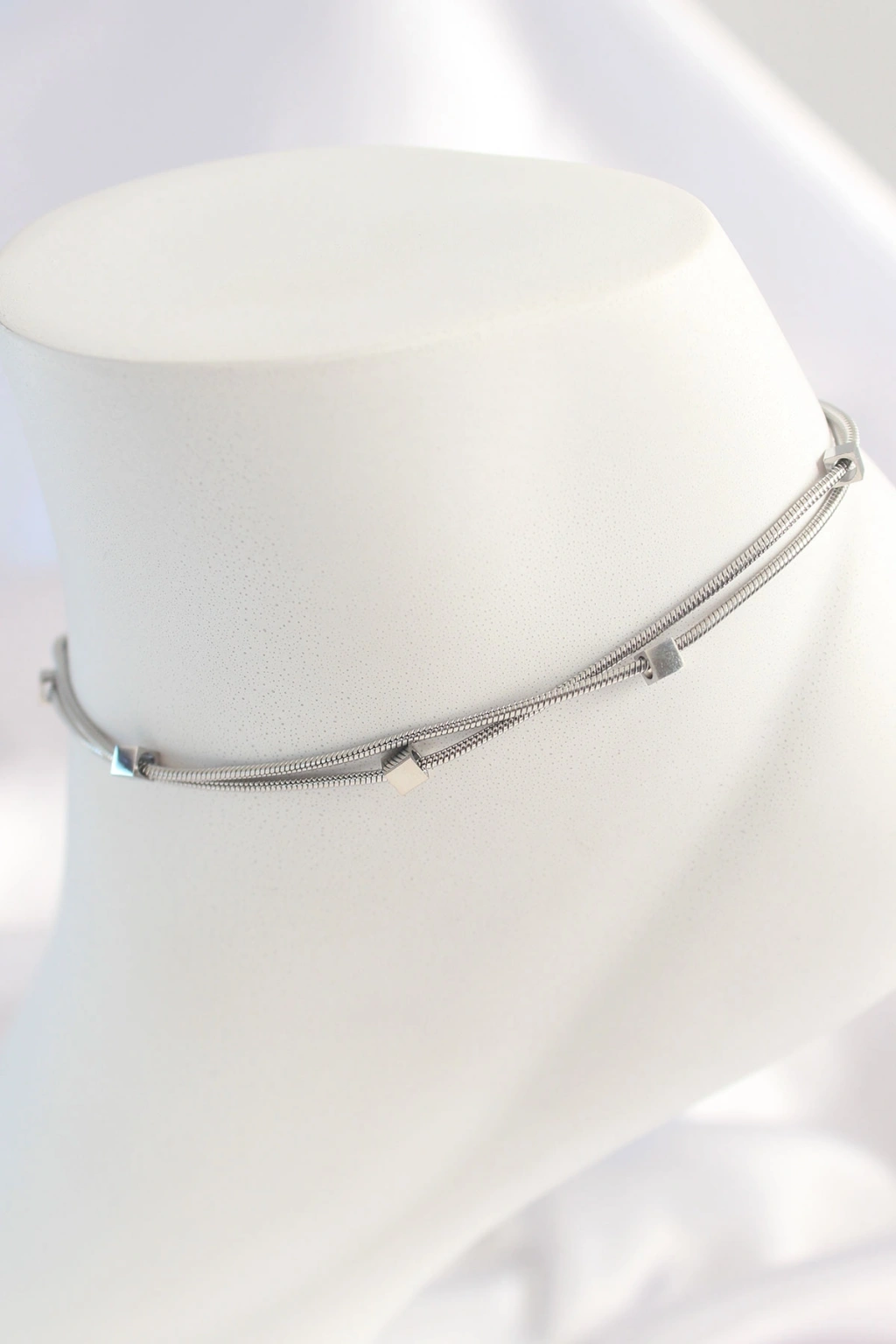 316L Çelik Gümüş Renk Minimal Kare Model Kadın Halhal