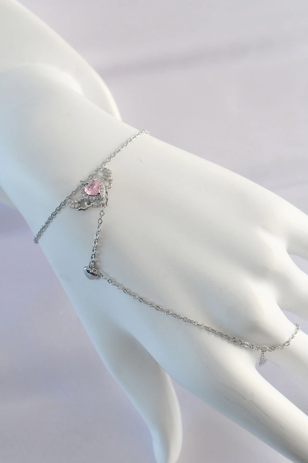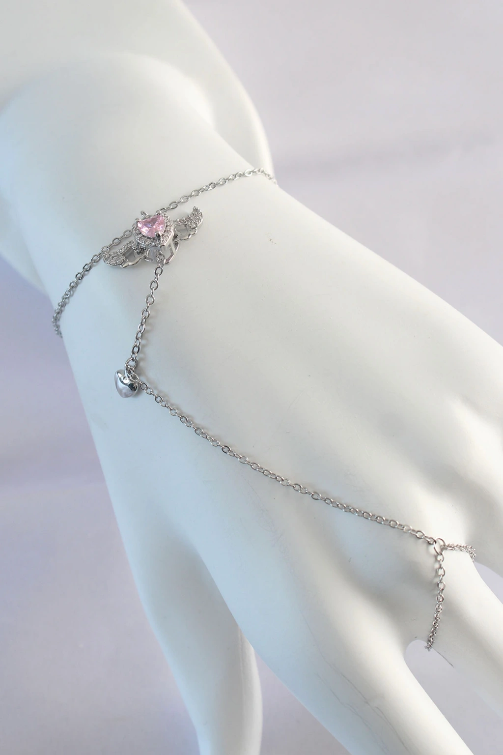 316l Çelik Gümüş Renk Pembe Zirkon Taşlı Kanatlı Kalp Model Şahmeran