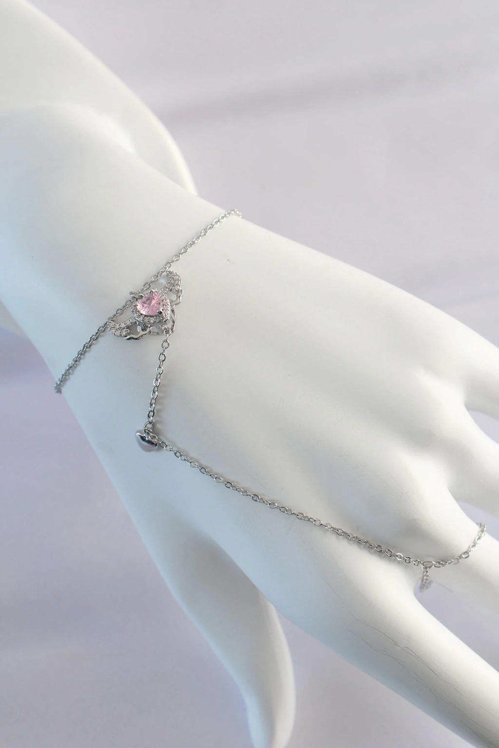 316L Çelik Gümüş Renk Pembe Zirkon Taşlı Kalp Şahmeran