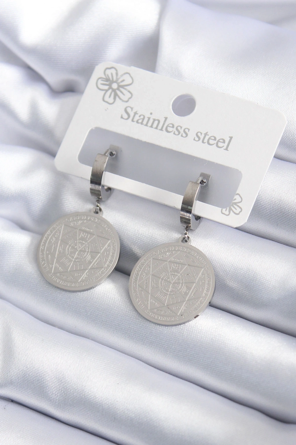316L Çelik Gümüş Renk Pentagram İşleme Model Kadın Küpe