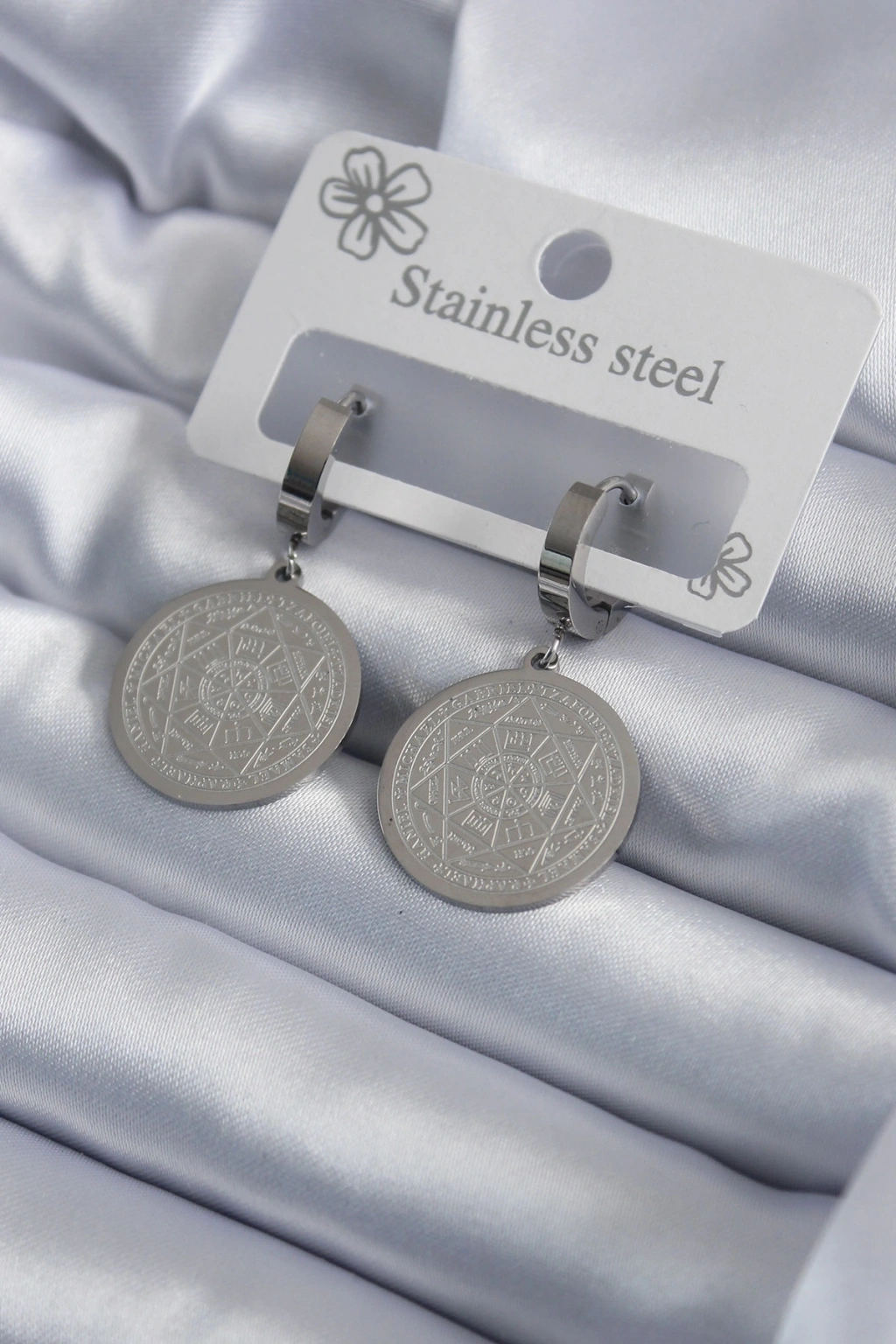 316L Çelik Gümüş Renk Pentagram Yıldızı İşleme Kadın Küpe