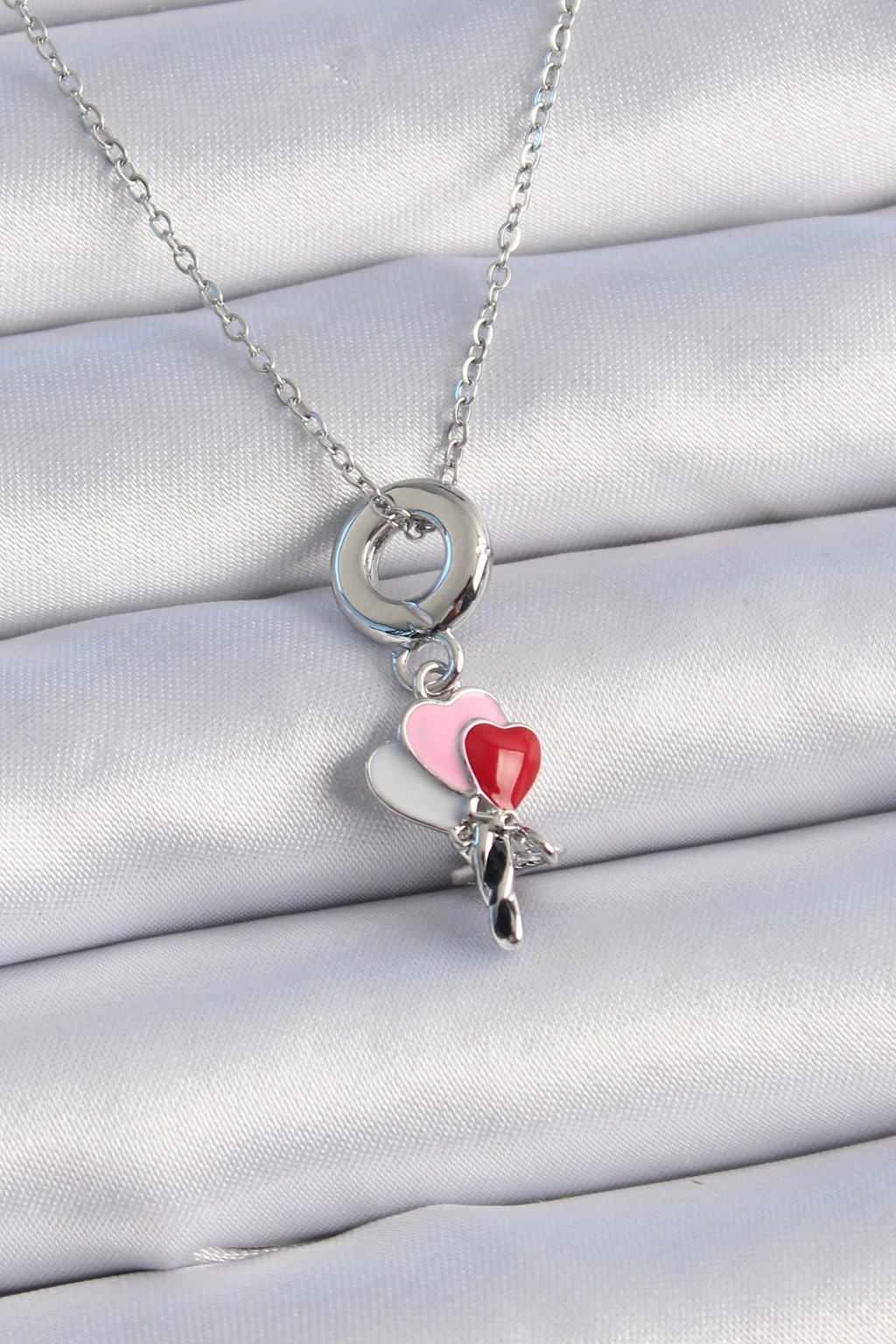 316L Çelik Gümüş Renk Renkli Kalp Figür Charm Model Kadın Kolye