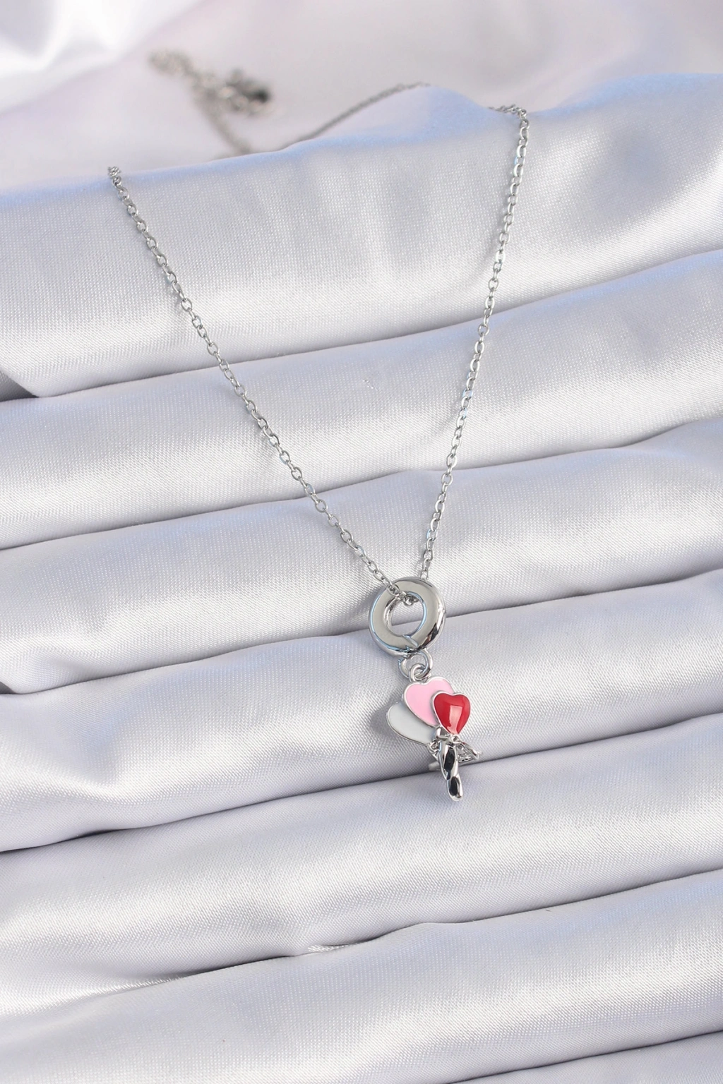 316L Çelik Gümüş Renk Zincir Kalp Figür Kadın Kolye