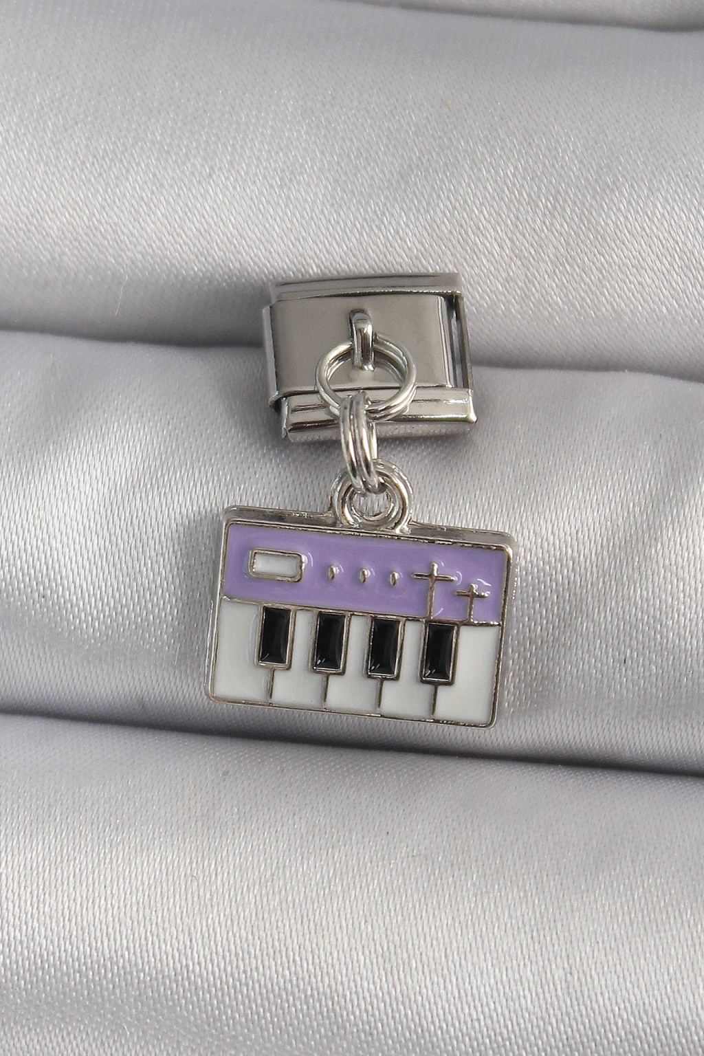316L Çelik Gümüş Renk Sallantı Mor Piyano Figür Nomination Charm
