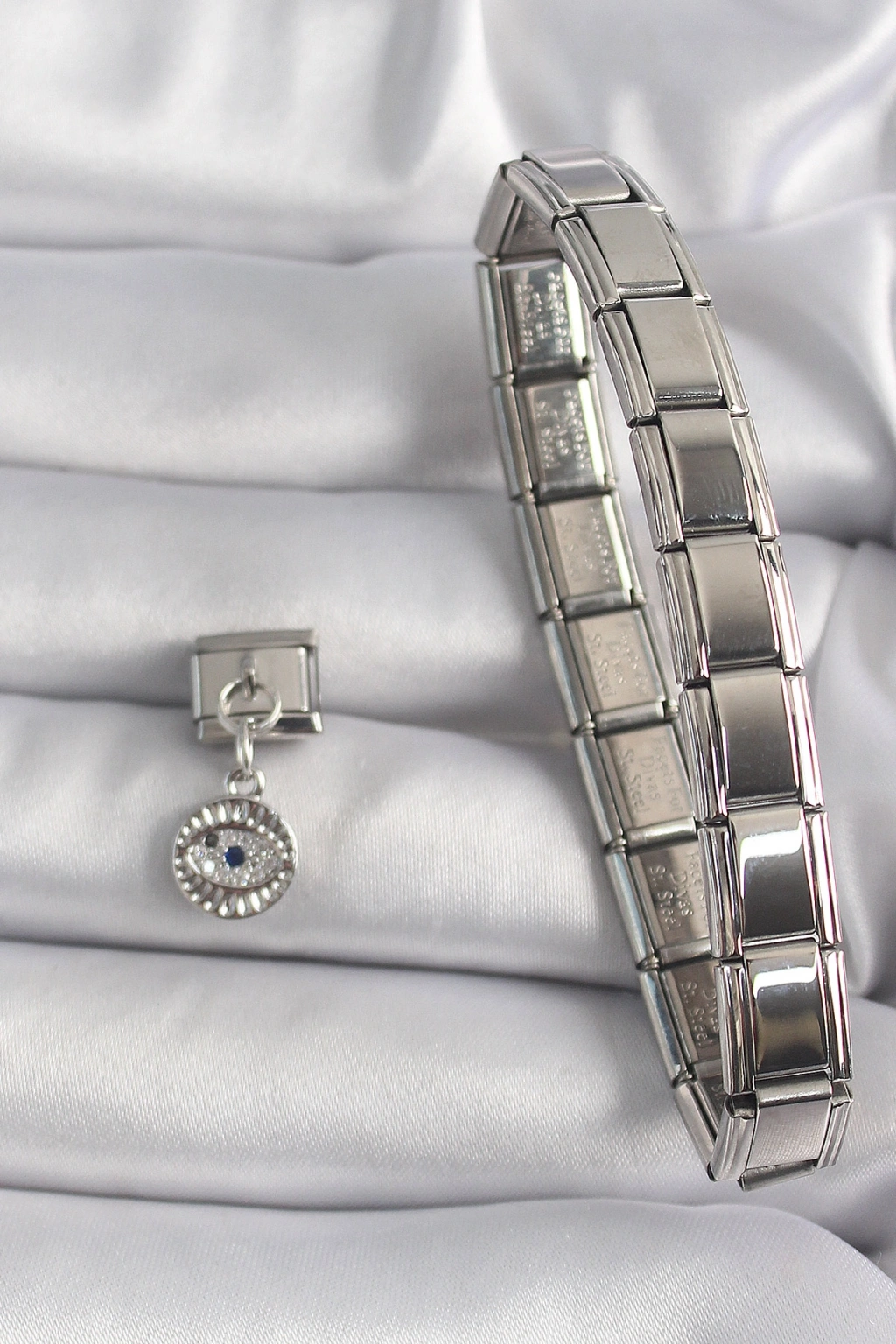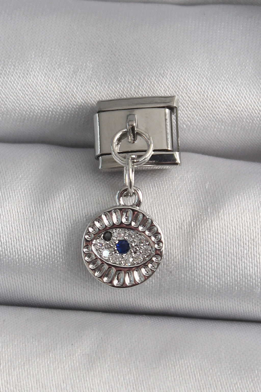 316L Çelik Gümüş Renk Sallantı Zirkon Taşlı Göz Model Nomination Charm