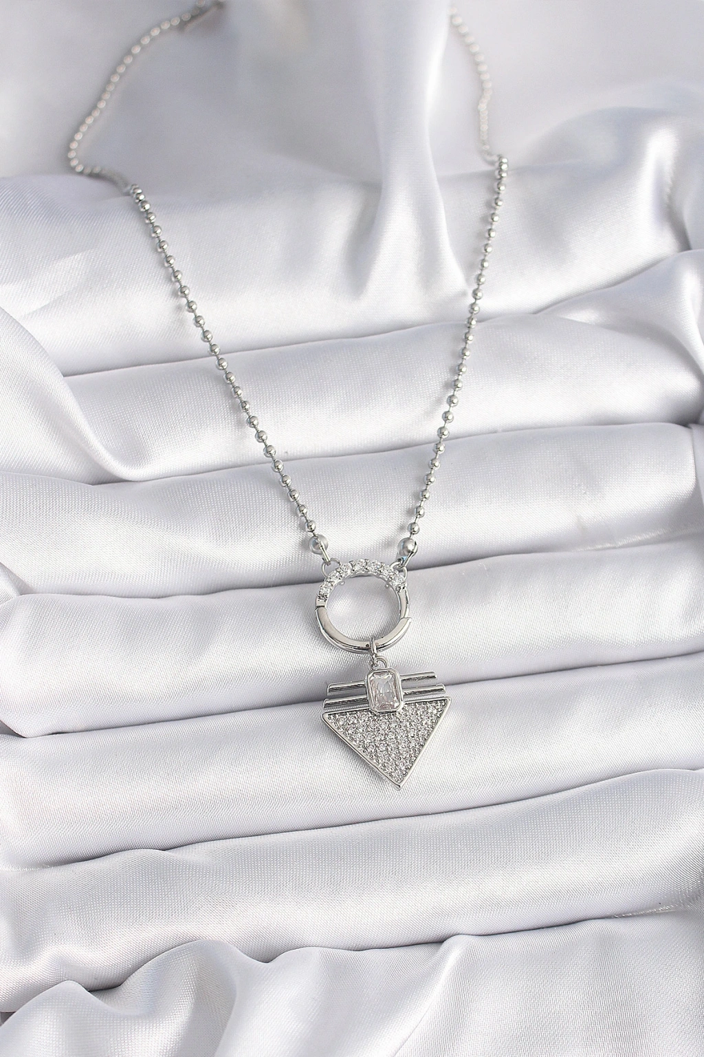 316l Çelik Gümüş Renk Topçuk Zincir Zirkon Taşlı Üçgen Model Kadın Kolye