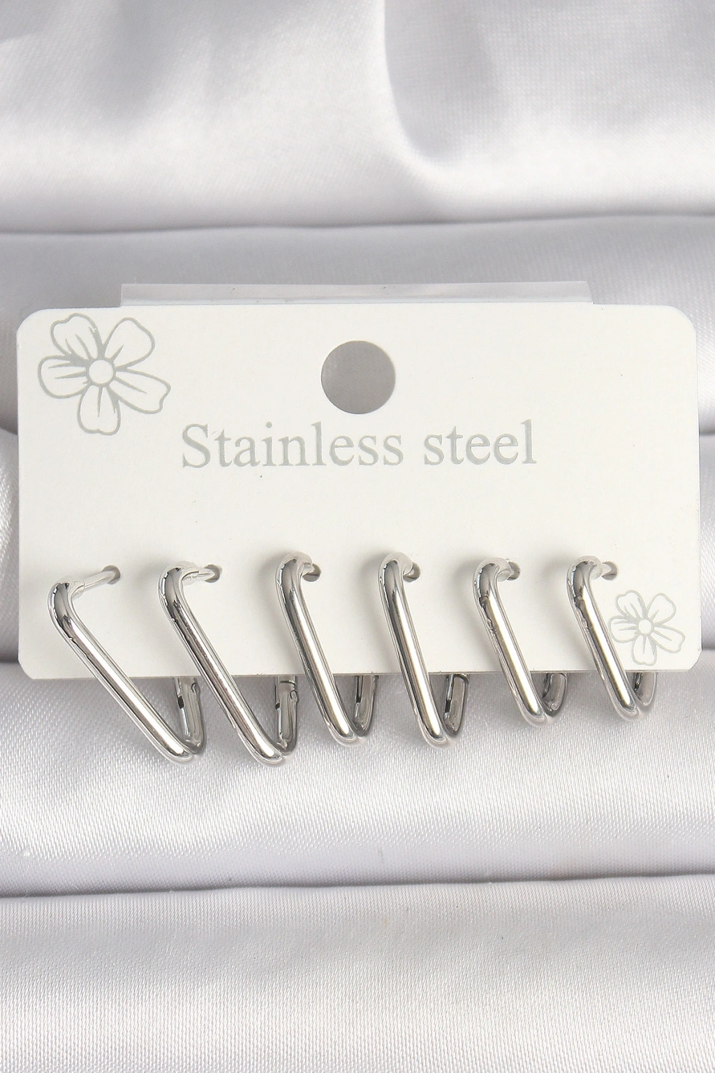 316l Çelik Gümüş Renk Üçgen Model Kadın Küpe Seti