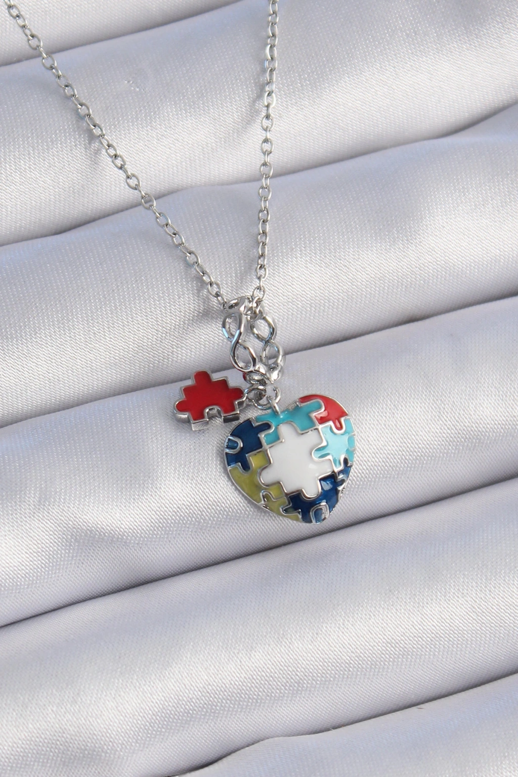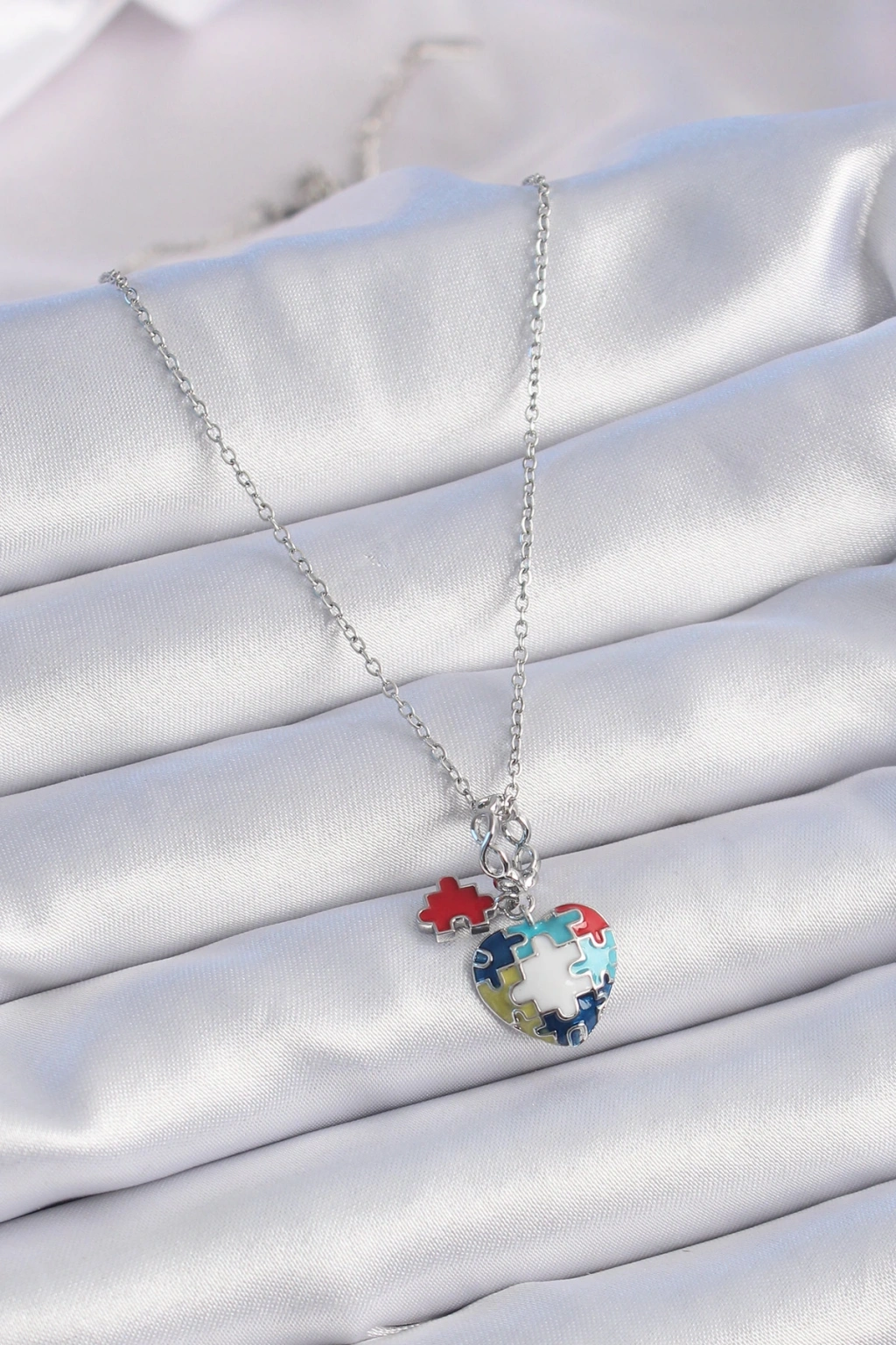 316l Çelik Gümüş Renk Yapboz Motif Kalp Figür Charm Model Kadın Kolye