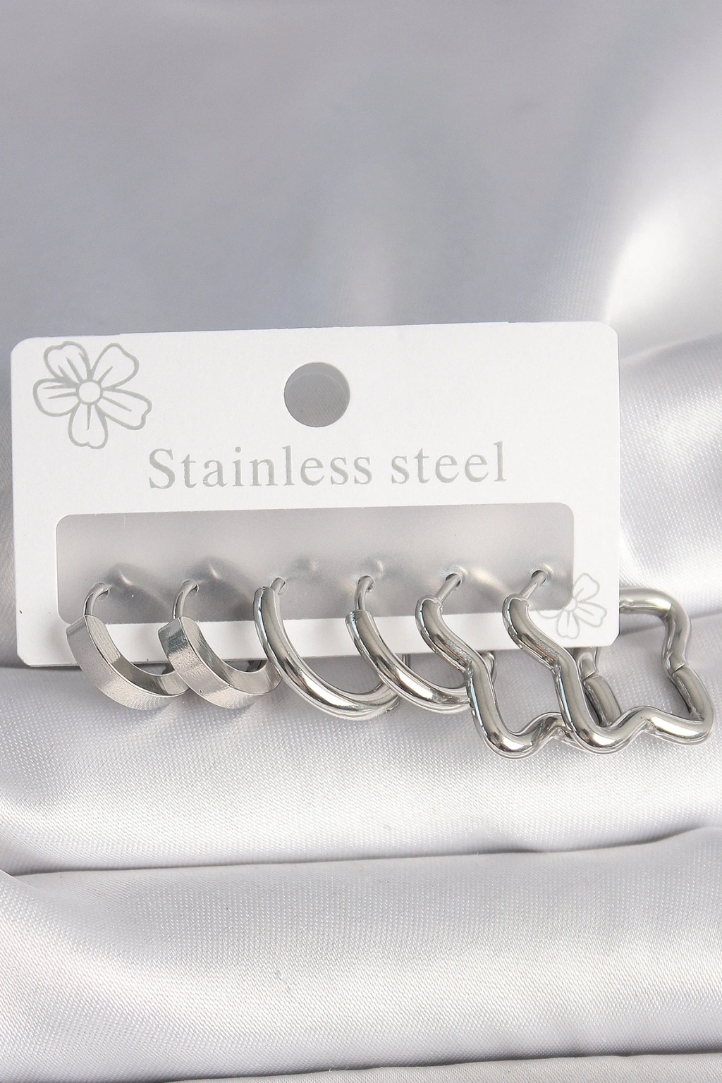Yonca Model Gümüş Renk Pirinç 3'lü Kadın Küpe Seti
