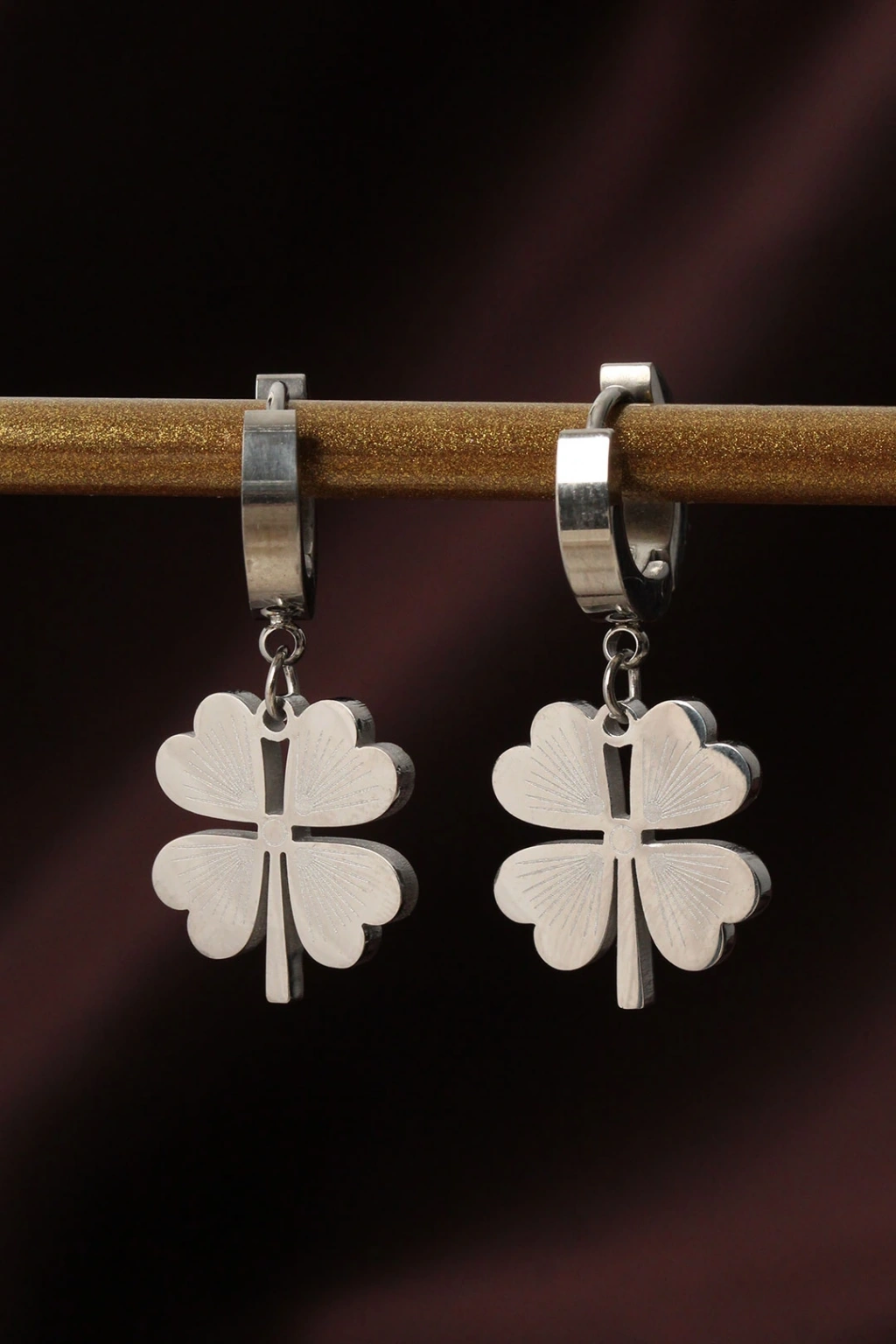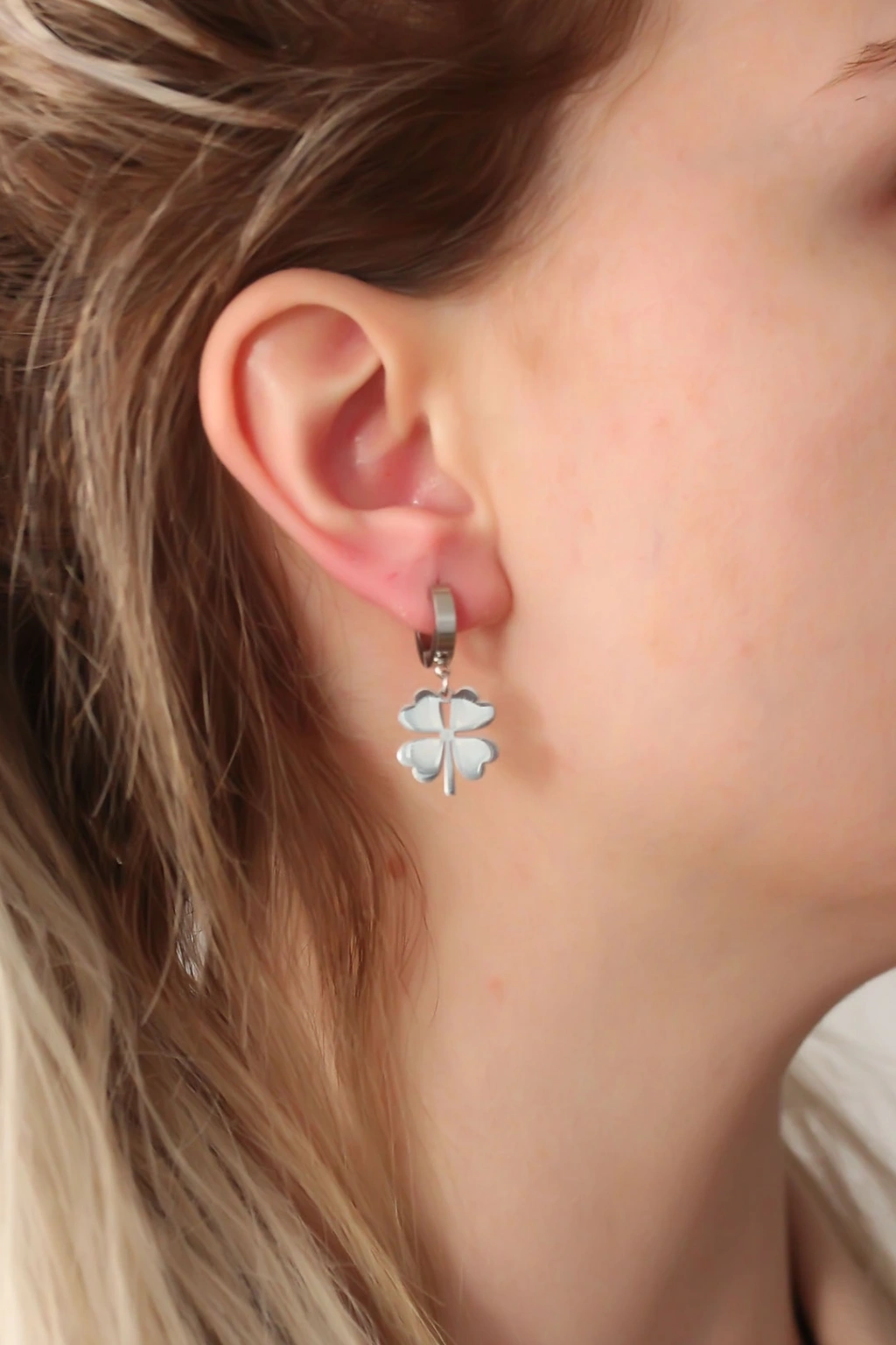 316l Çelik Gümüş Renk Yonca Küpe