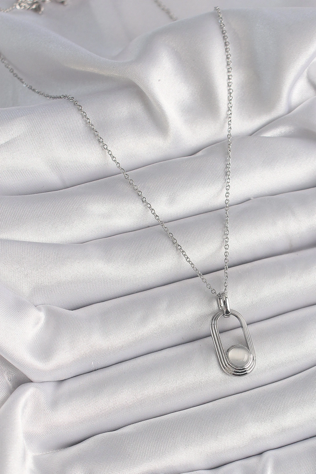 316l Çelik Gümüş Renk Zincir Beyaz Kedi Göz Model Kadın Kolye