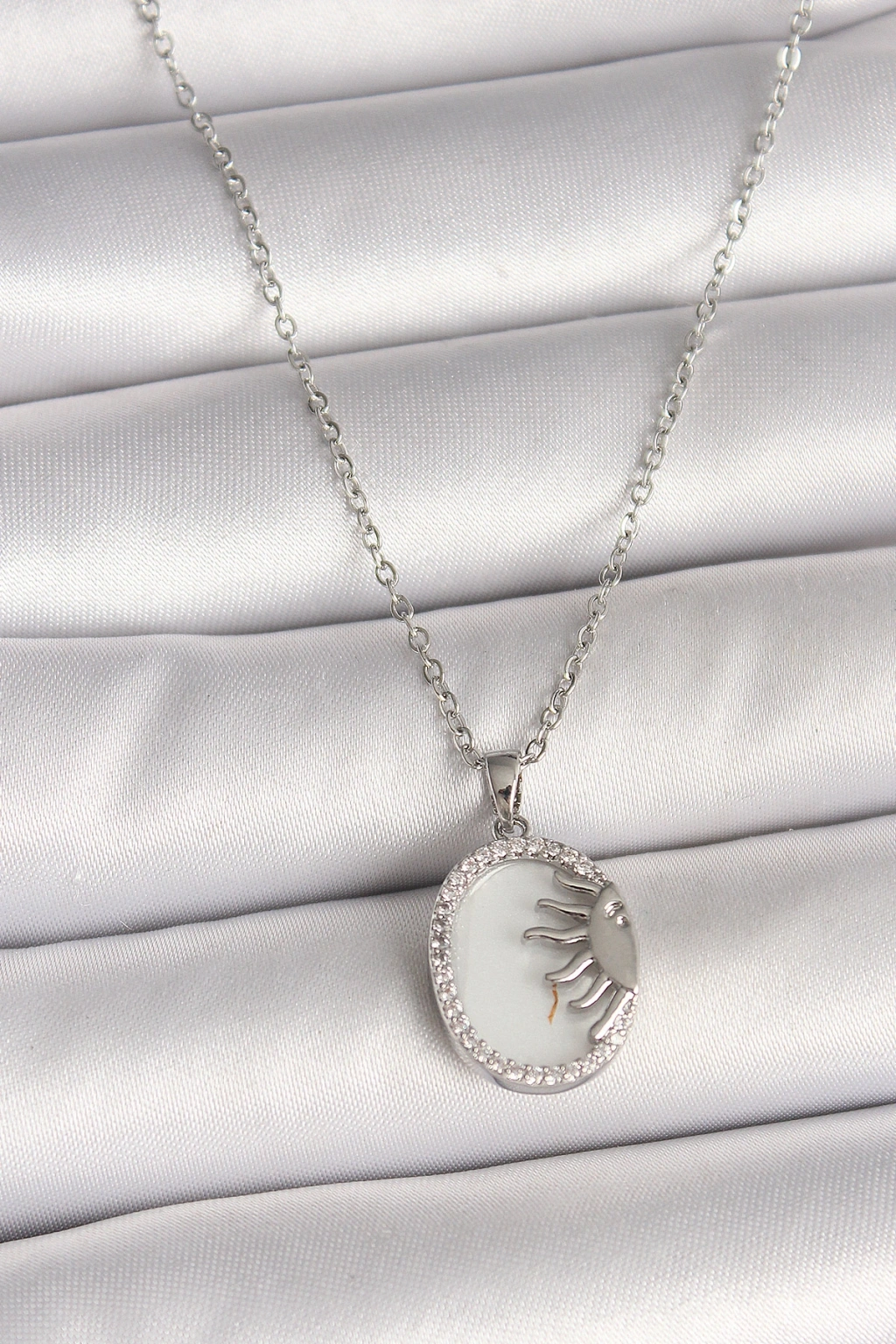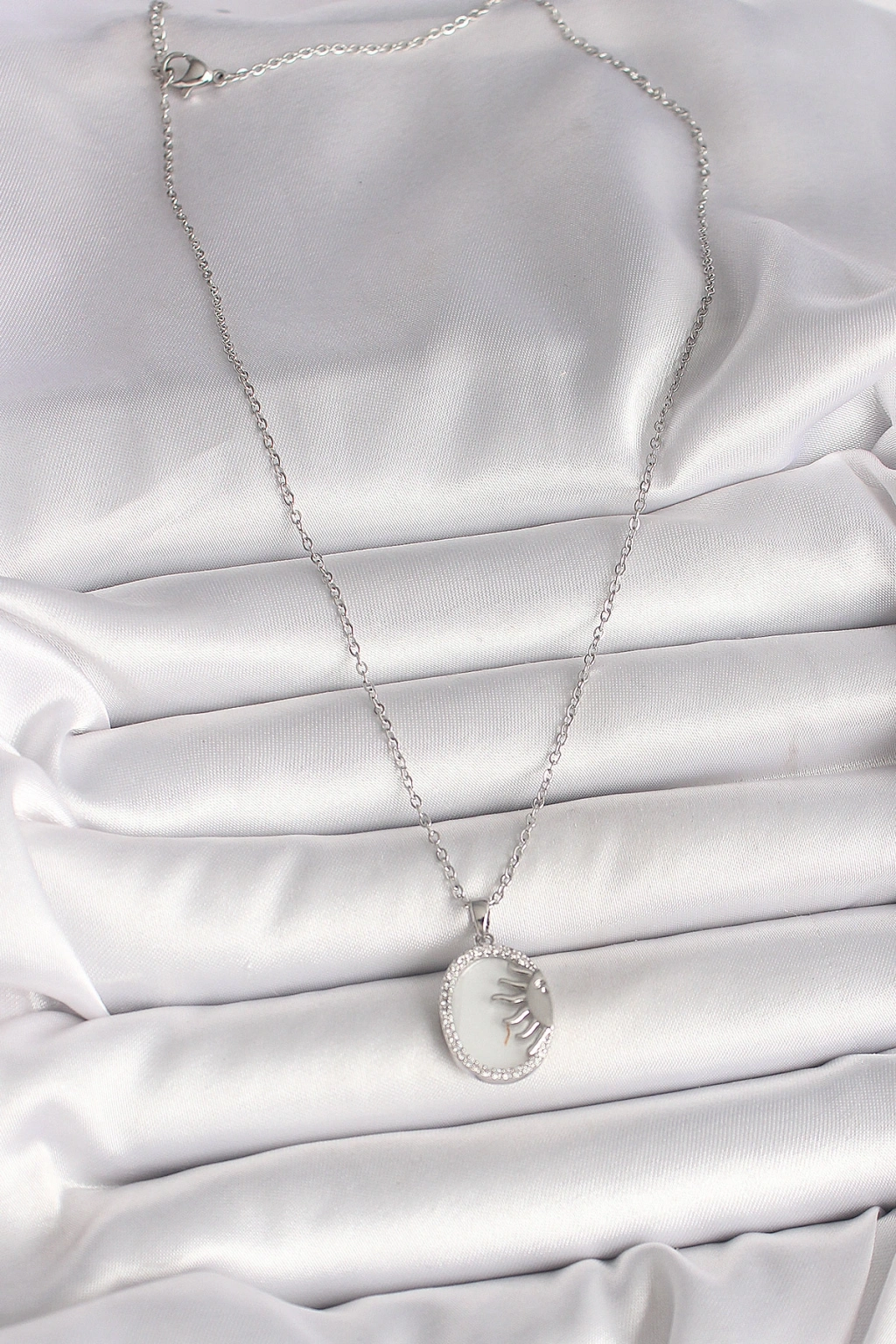 316l Çelik Gümüş Renk Zincir Beyaz Mineli Gün Batımı Model Zirkon Taş Detaylı Kadın Kolye
