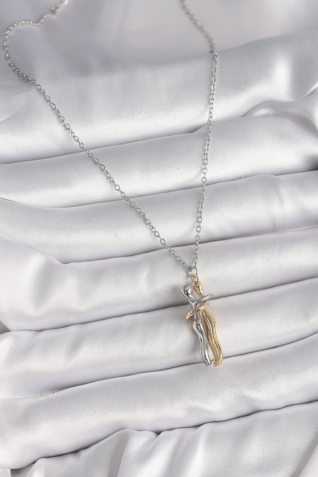 316L Çelik Gümüş Renk Zincir Sarılma Model Kadın Kolye