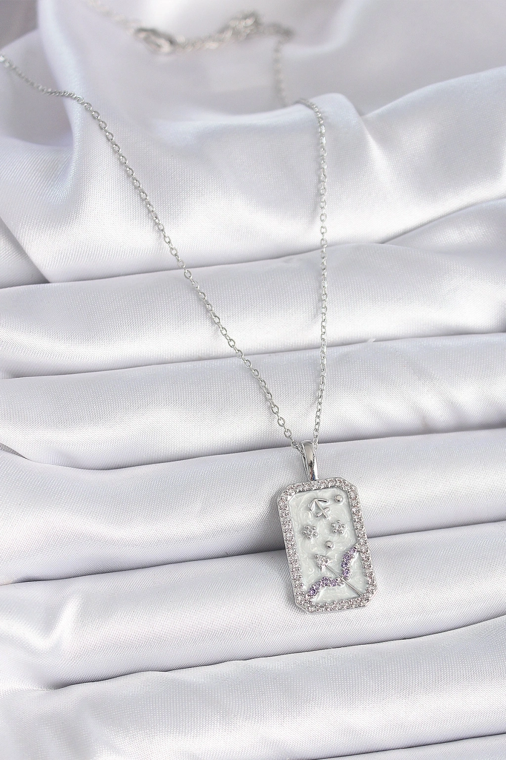 316L Çelik Gümüş Renk Zincir Yay Burcu Zirkon Taşlı Kadın Kolye
