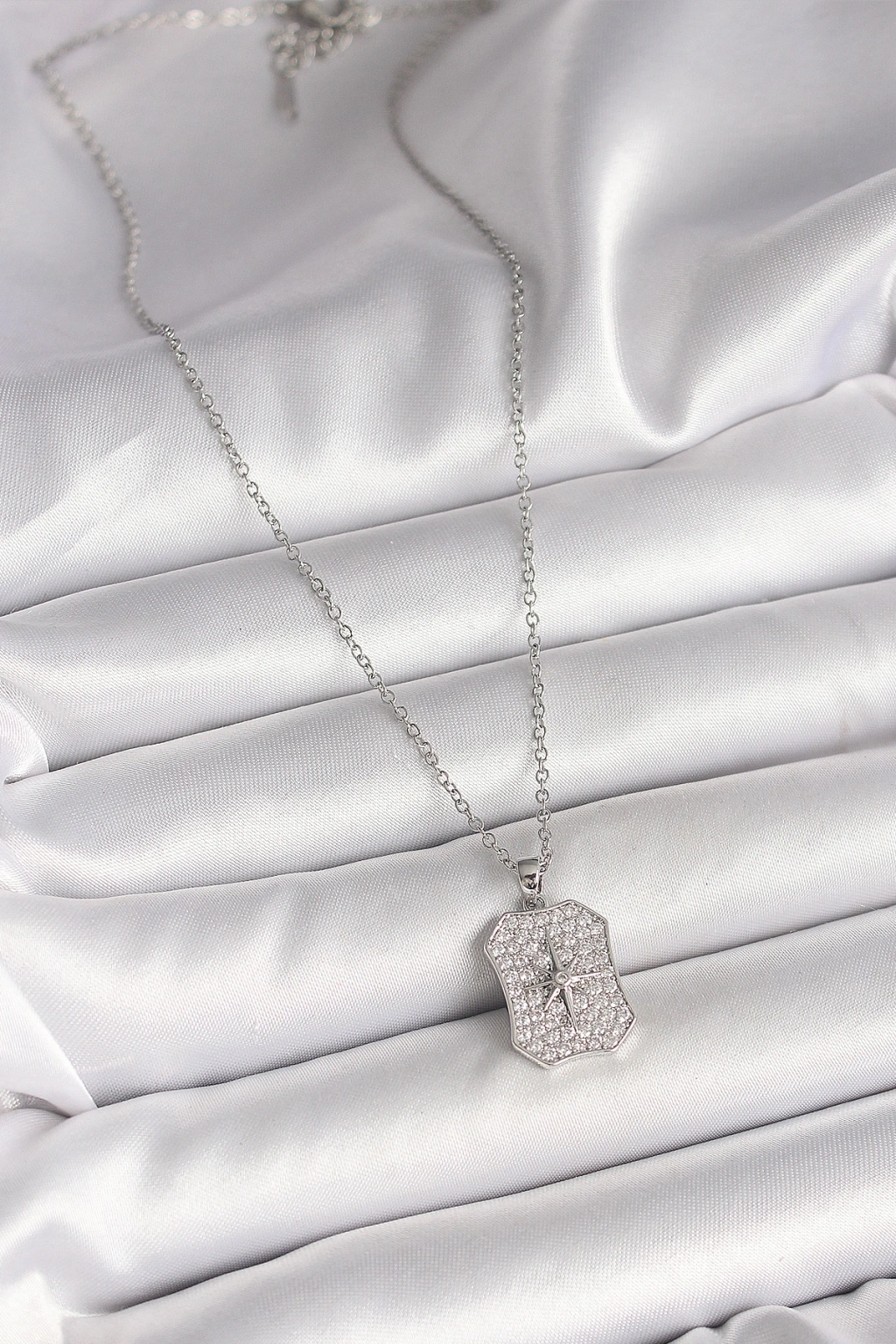 316L Çelik Gümüş Renk Zincir Zirkon Taşlı Kutup Yıldız İşlemeli Madalyon Model Kadın Kolye