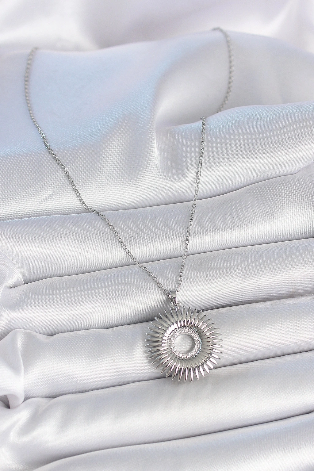 316L Çelik Gümüş Renk Zincir Zirkon Taşlı Nova Yıldız Model Kadın Kolye