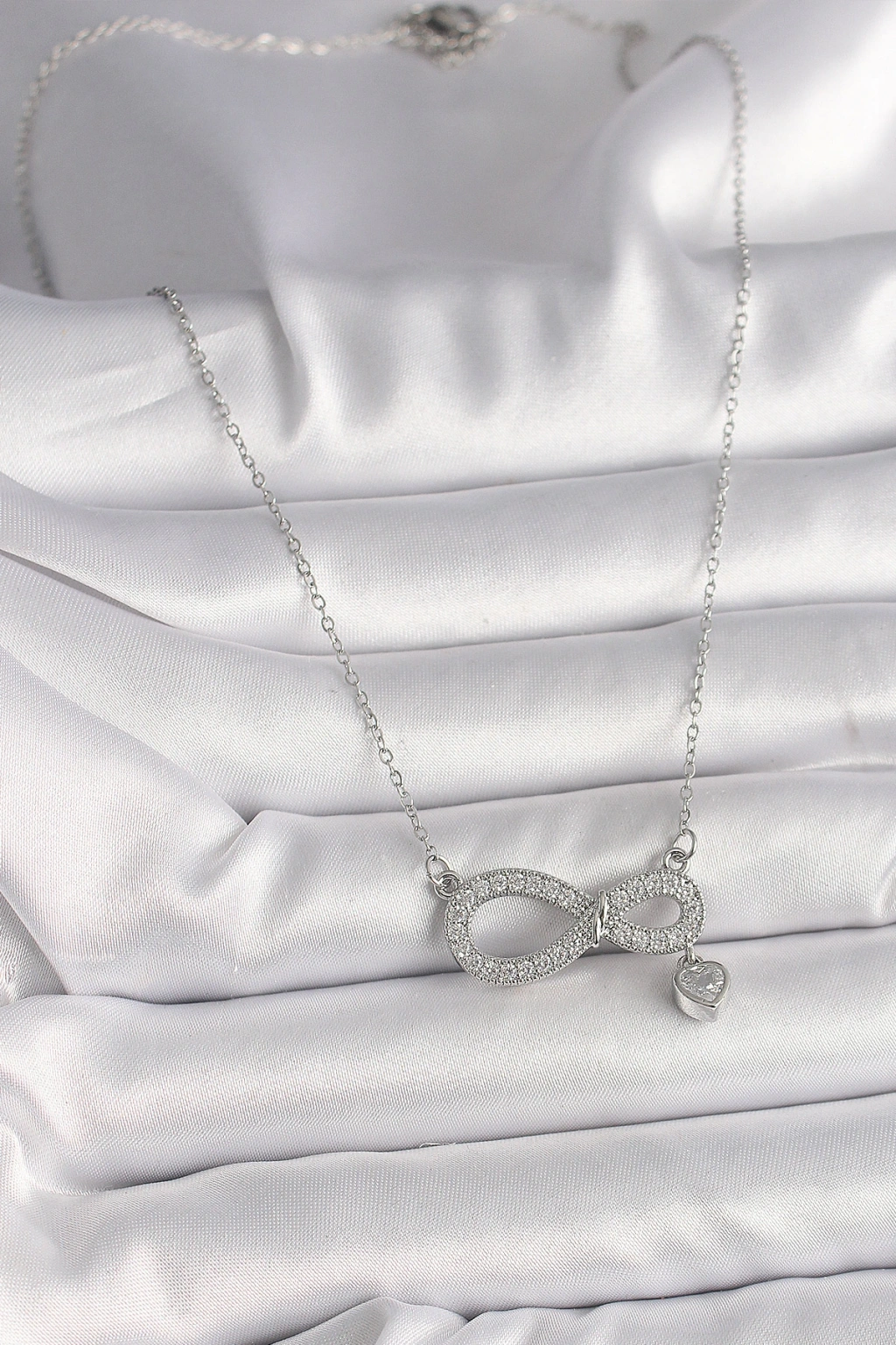 316l Çelik Gümüş Renk Zincir Zirkon Taşlı Sonsuzluk Model Taşlı Kalp Detay Kadın Kolye