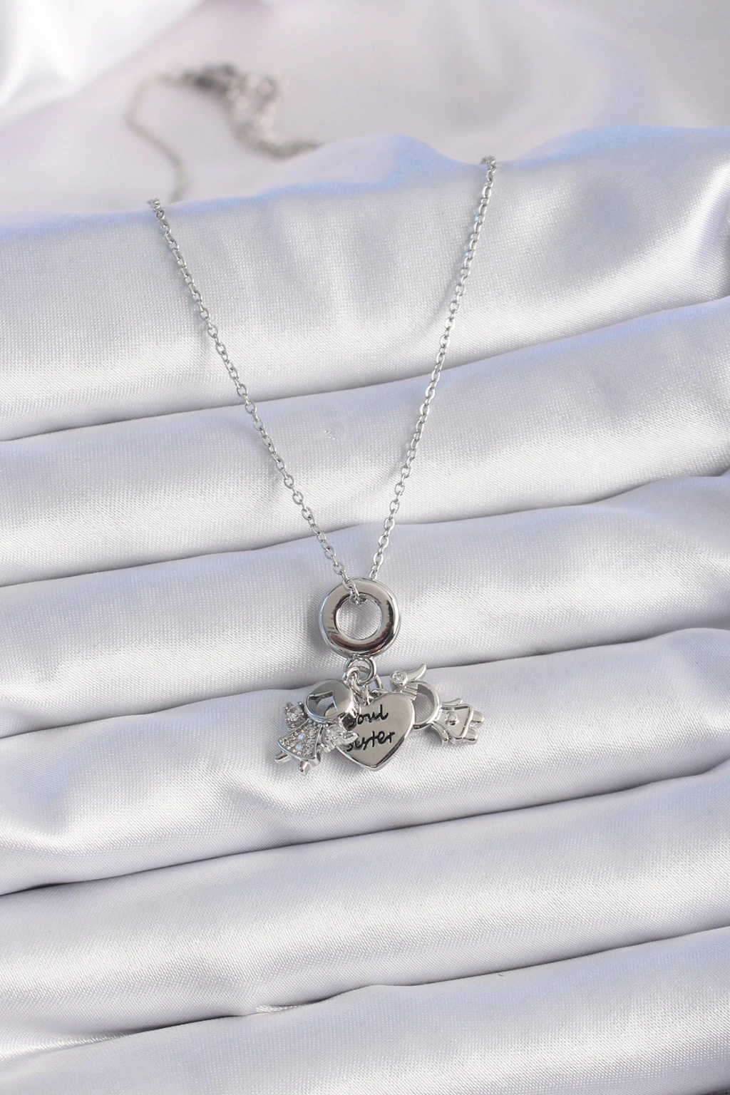 316l Çelik Gümüş Renk Zirkon Taş Detay Çocuk Figür Charm Model Kadın Kolye