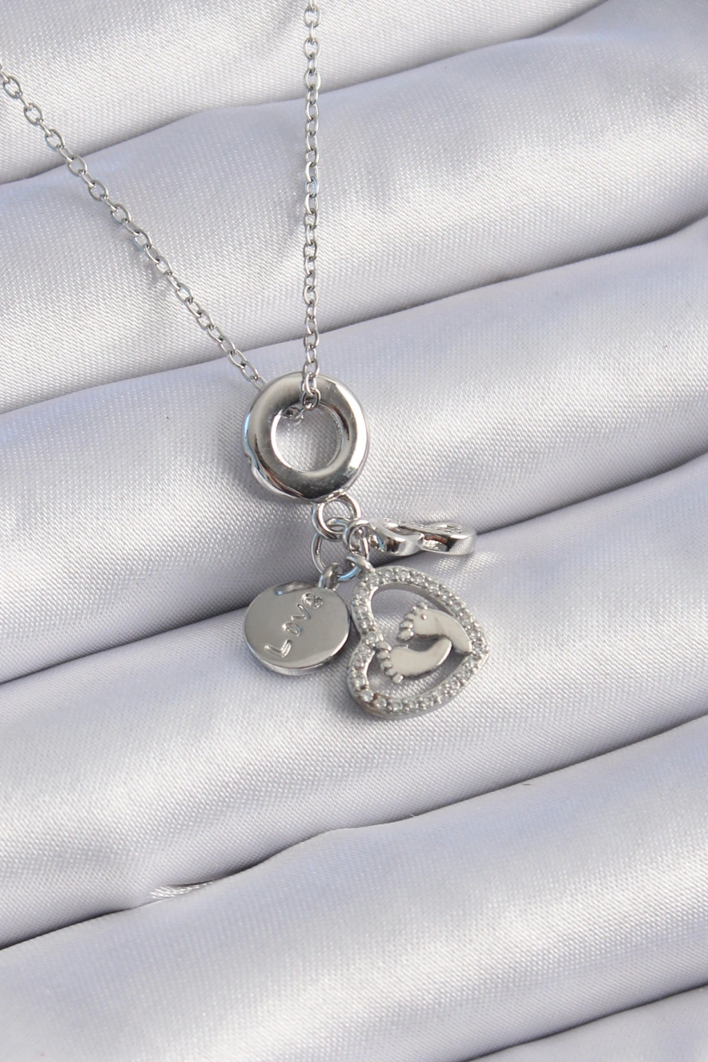 316l Çelik Gümüş Renk Zirkon Taş Detay Kalp Model Charm Kadın Kolye