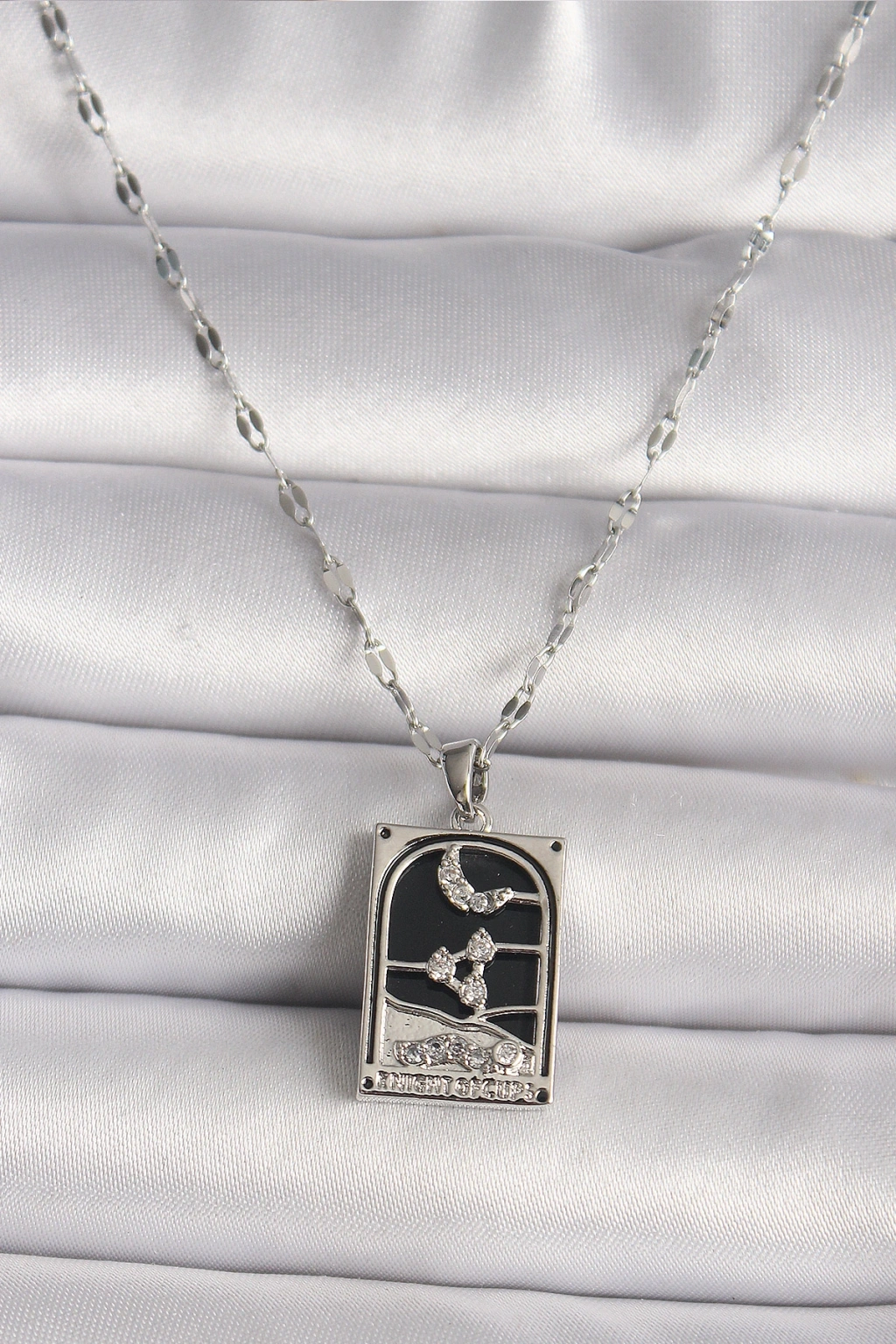316l Çelik Gümüş Renk Zirkon Taşlı Ay Figürlü Taror Model Kadın Kolye