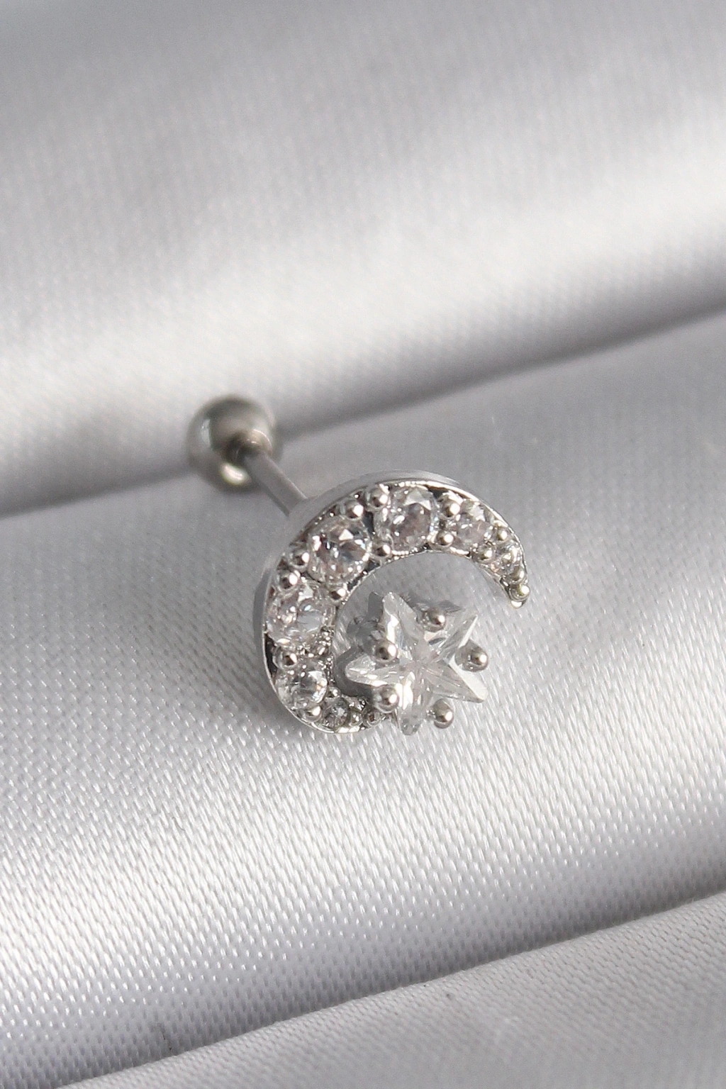 316l Çelik Gümüş Renk Zirkon Taşlı Ay Yıldız Tragus Piercing