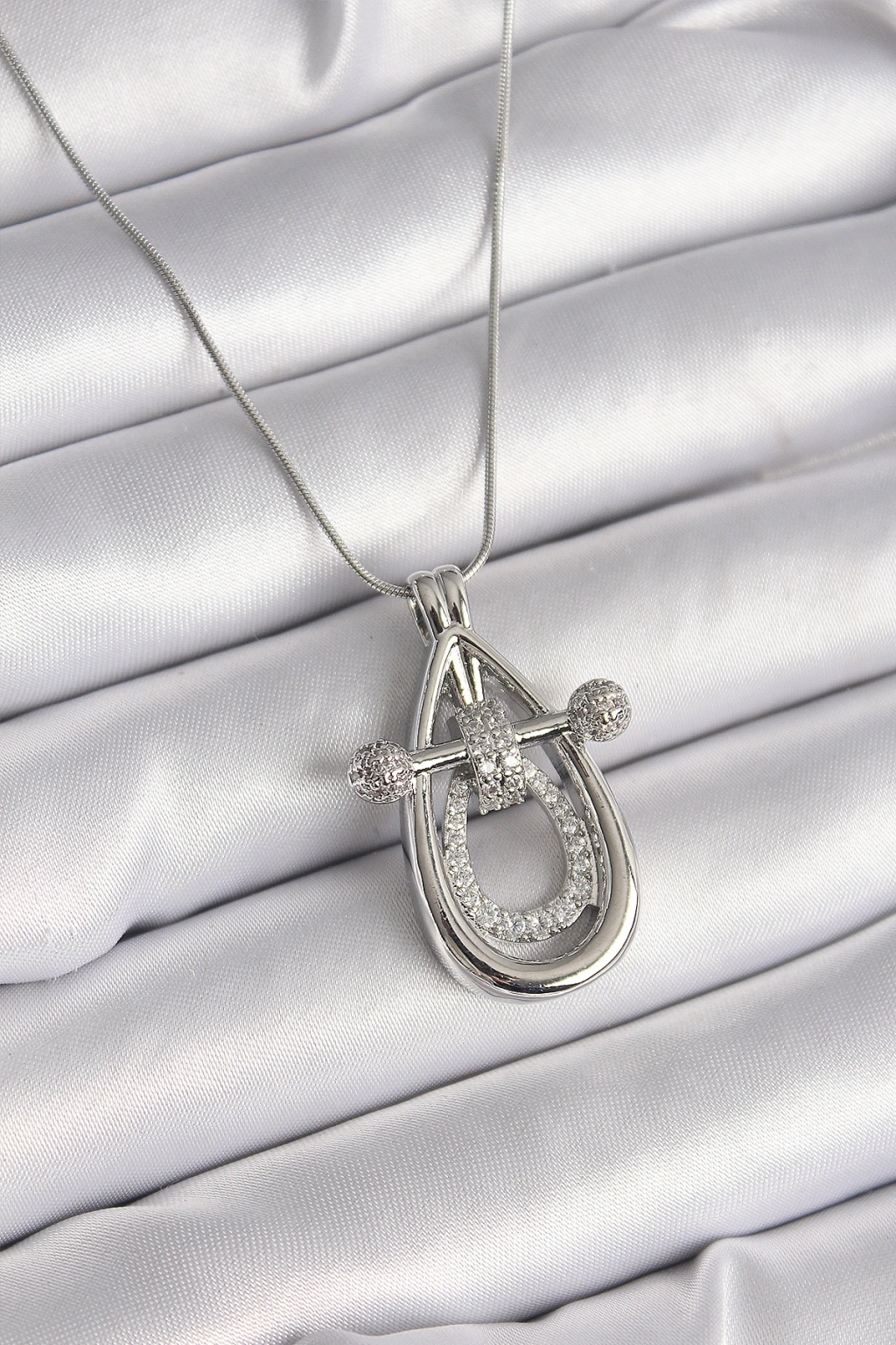 316L Çelik Gümüş Renk Zirkon Taşlı Damla Model Kadın Kolye