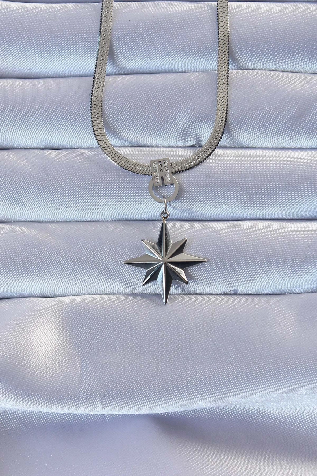 316l Çelik Gümüş Renk Zirkon Taşlı İtalyan Zincirli Kutup Yıldızı Kolye