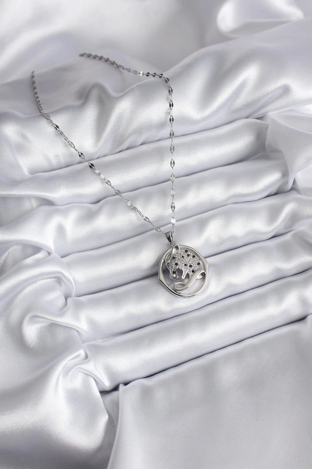 316l Çelik Gümüş Renk Zirkon Taşlı Jaguar Model Kadın Kolye