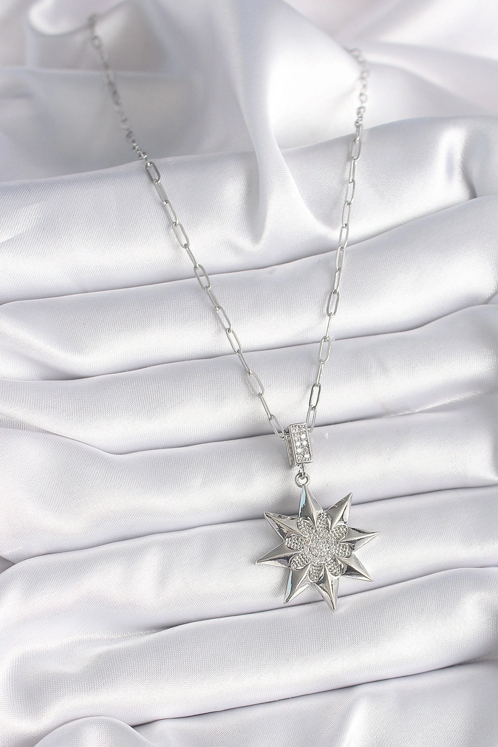 316L Çelik Gümüş Renk Zirkon Taşlı Kutup Yıldızı Model Kadın Kolye