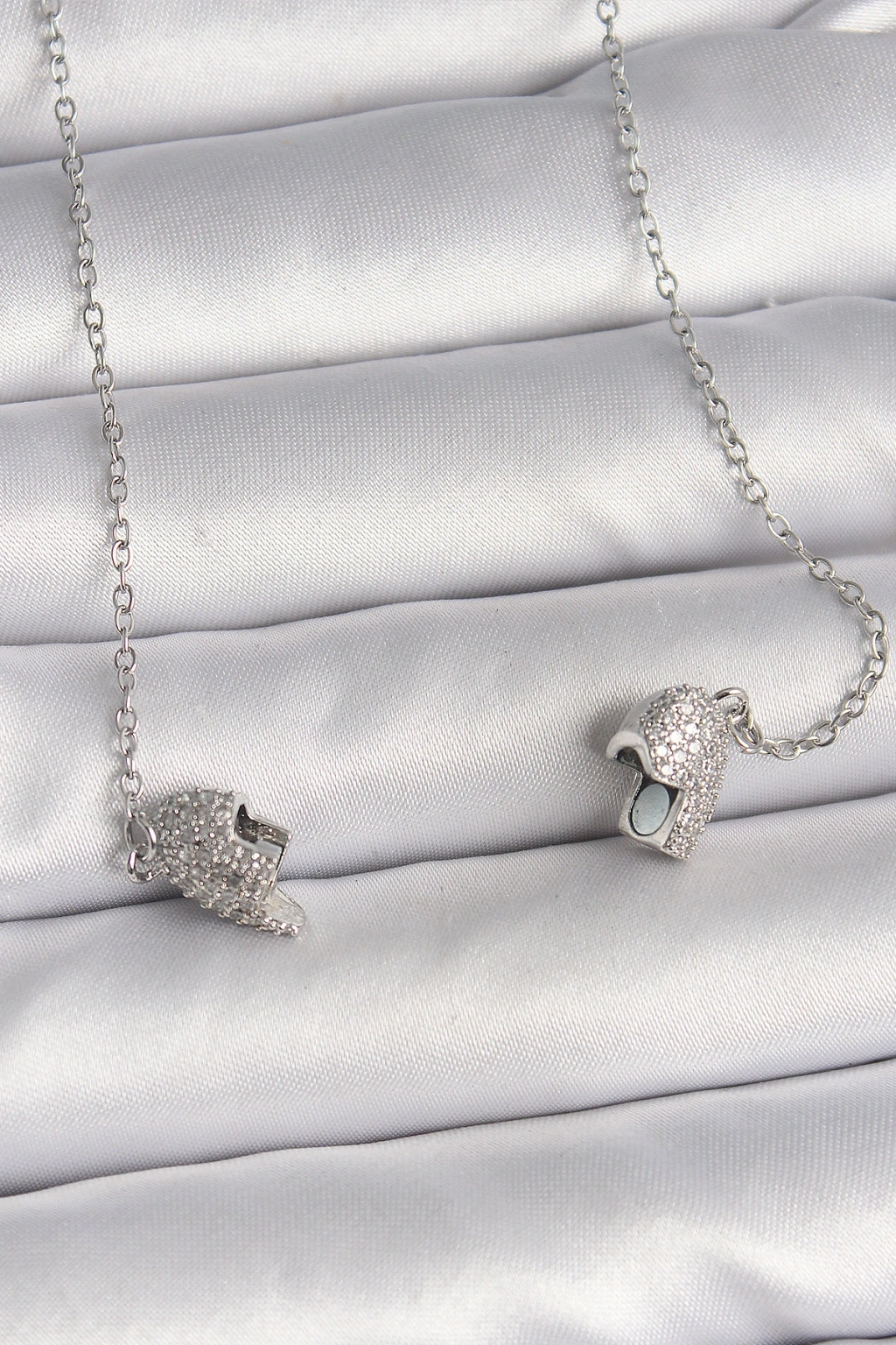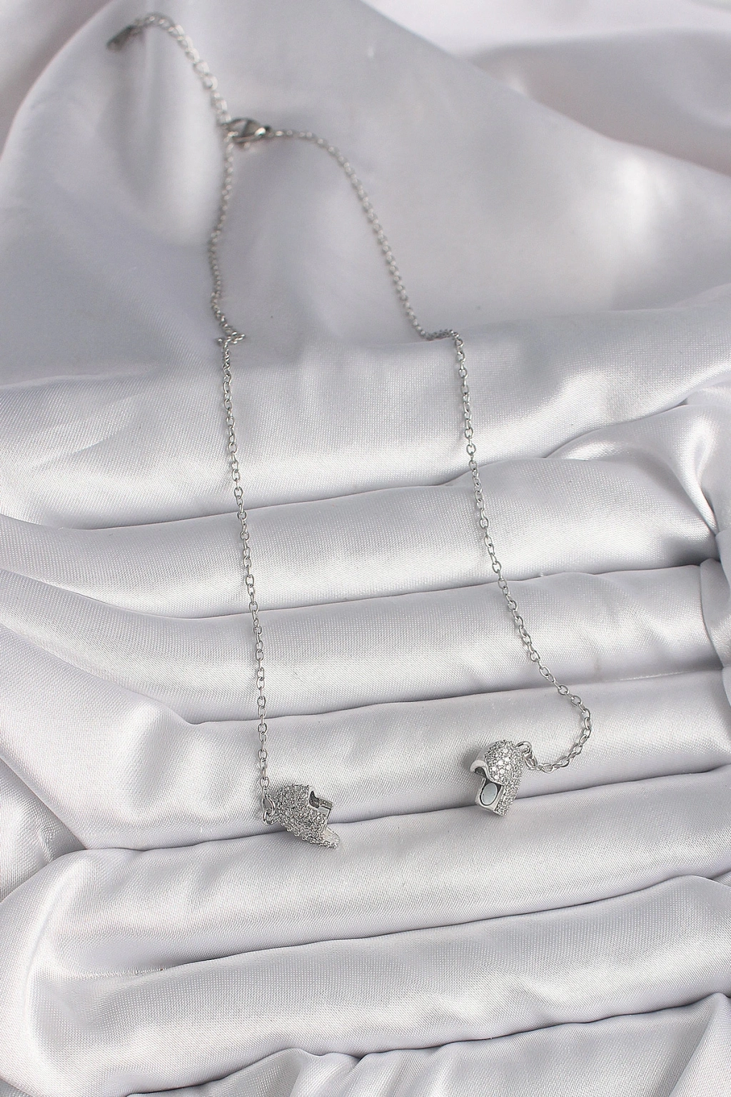 316l Çelik Gümüş Renk Zirkon Taşlı Mıknatıslı Kalp Model Kadın Kolye