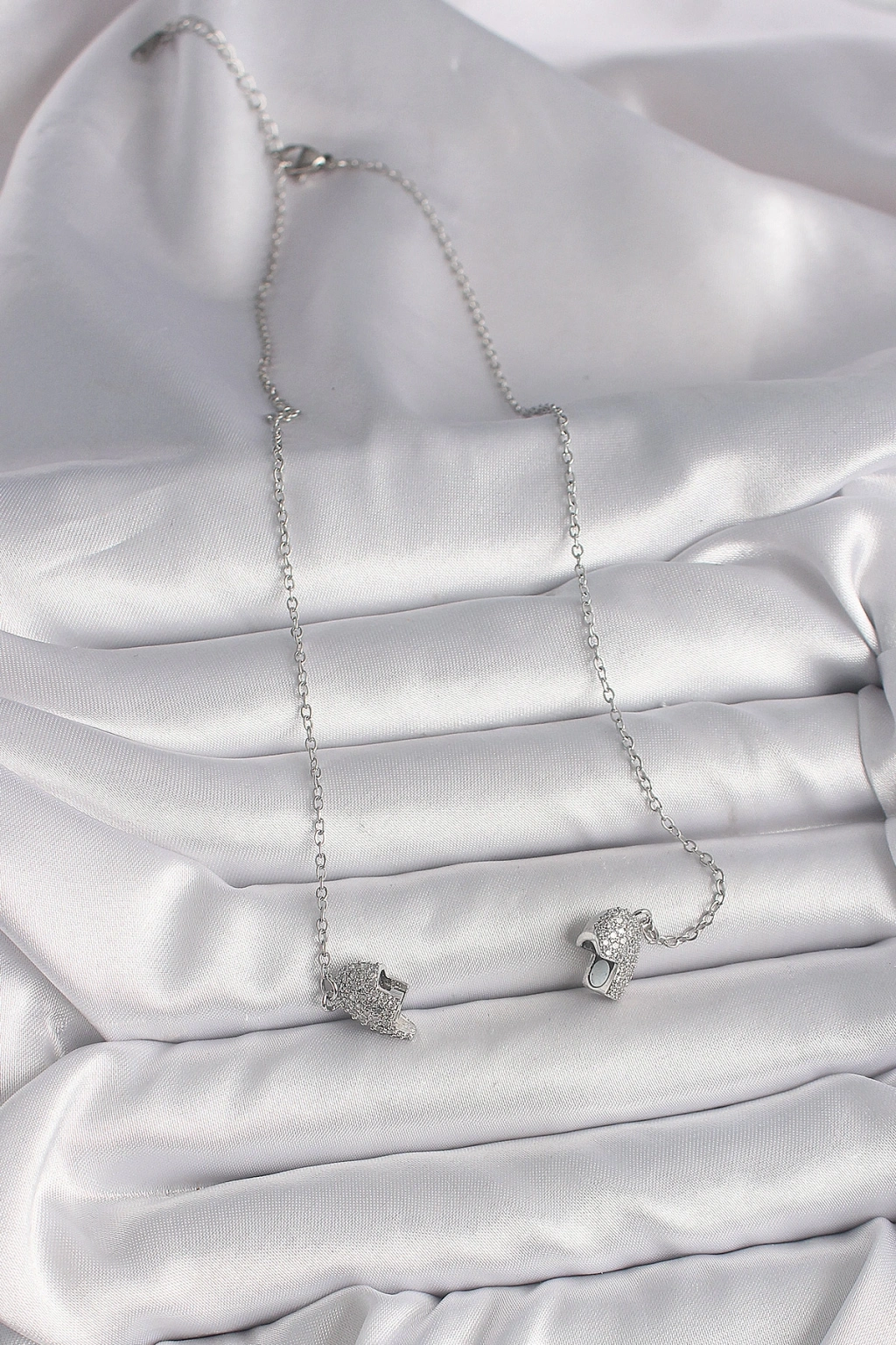 316L Çelik Gümüş Renk Zirkon Taşlı Mıknatıslı Kalp Model Kadın Kolye