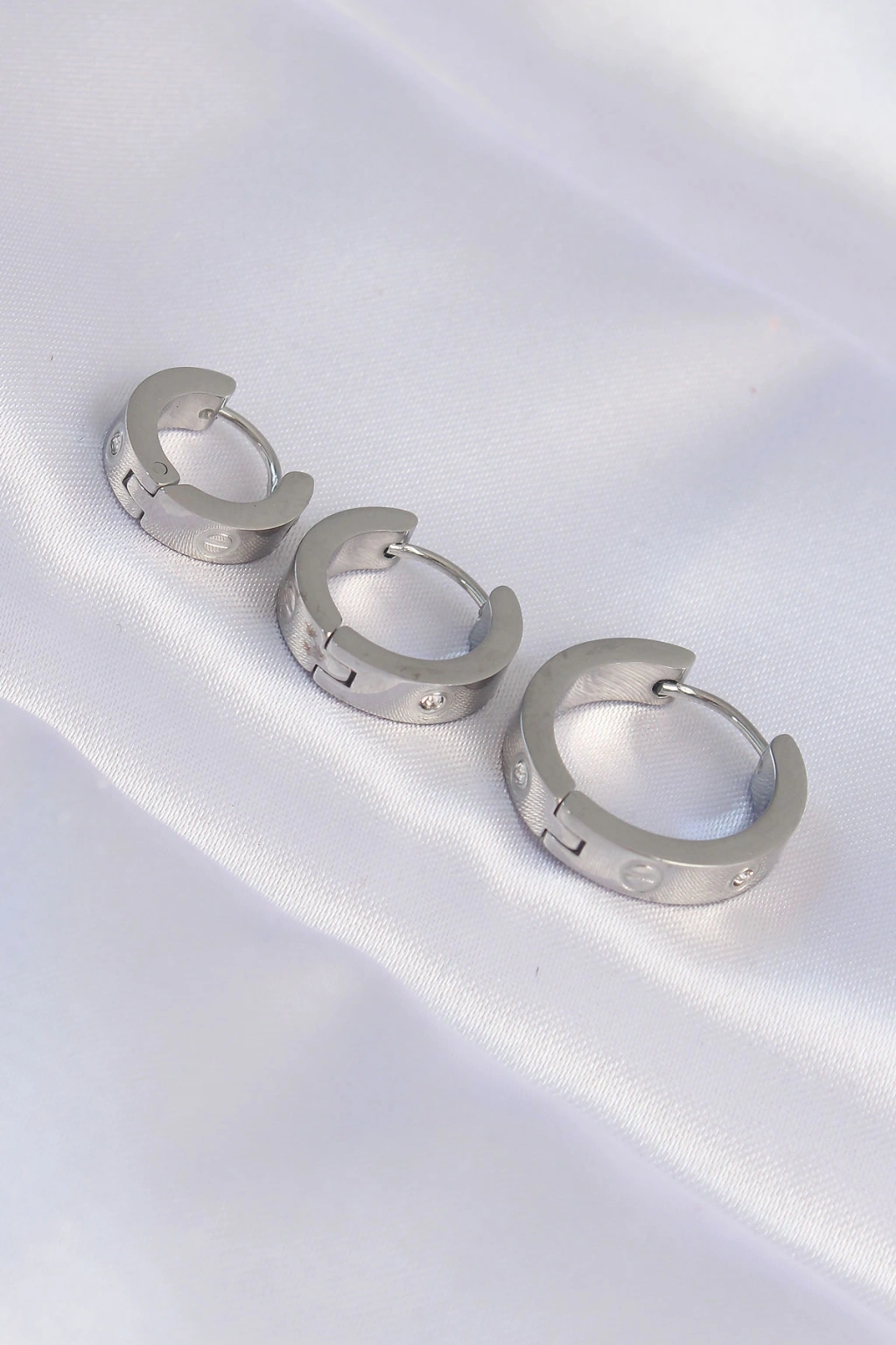 316L Çelik Gümüş Renk Zirkon Taşlı Model 3lü Halka Küpe