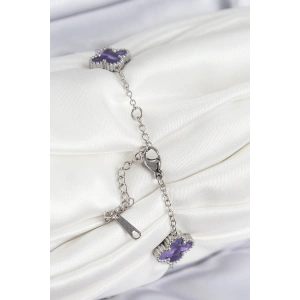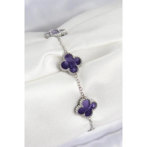 316L Çelik Sedefli Mor Gümüş Renk Yonca Kadın Bileklik