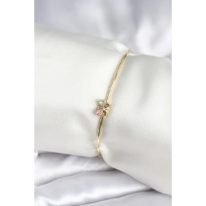 Renkli Kelebek Figür Gold Renk Pirinç Kadın Bileklik