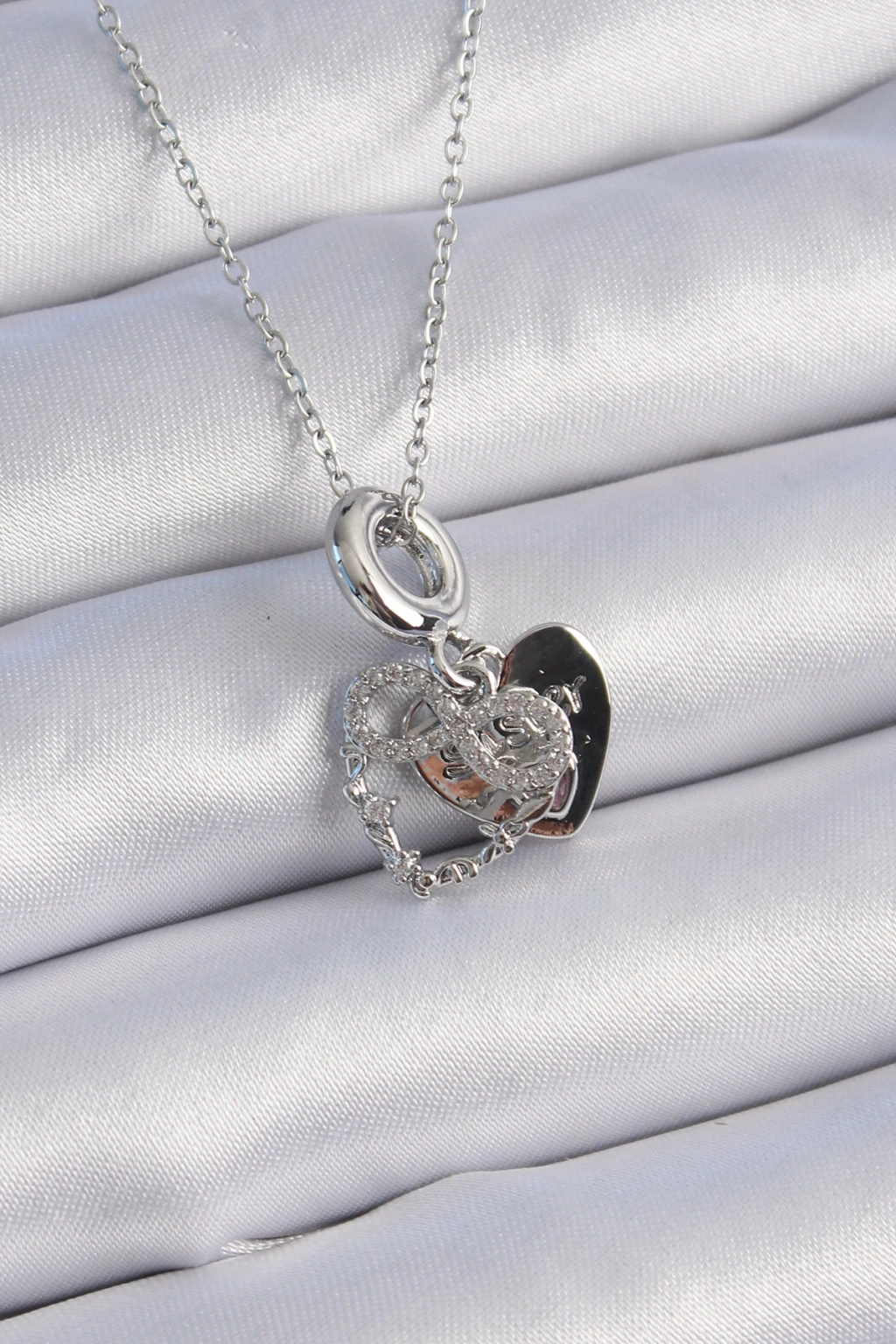 316l Çelik Gümüş Renk Zirkon Taşlı Sonsuzluk Kalp Figür Charm Model Kadın Kolye