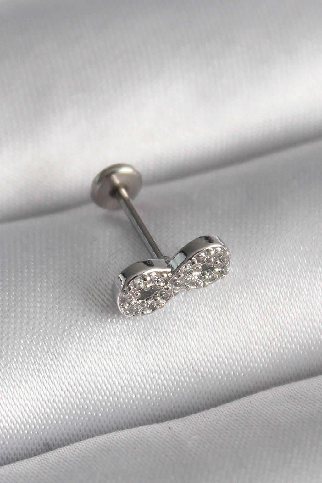 316l Çelik Gümüş Renk Zirkon Taşlı Sonsuzluk Model Tragus Piercing