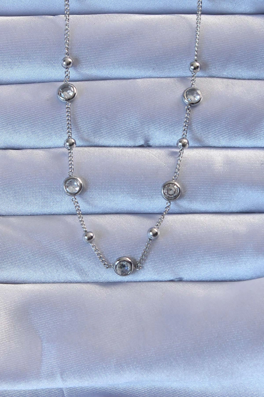 316L Çelik Gümüş Renk Zirkon Taşlı Top Zincirli Kolye