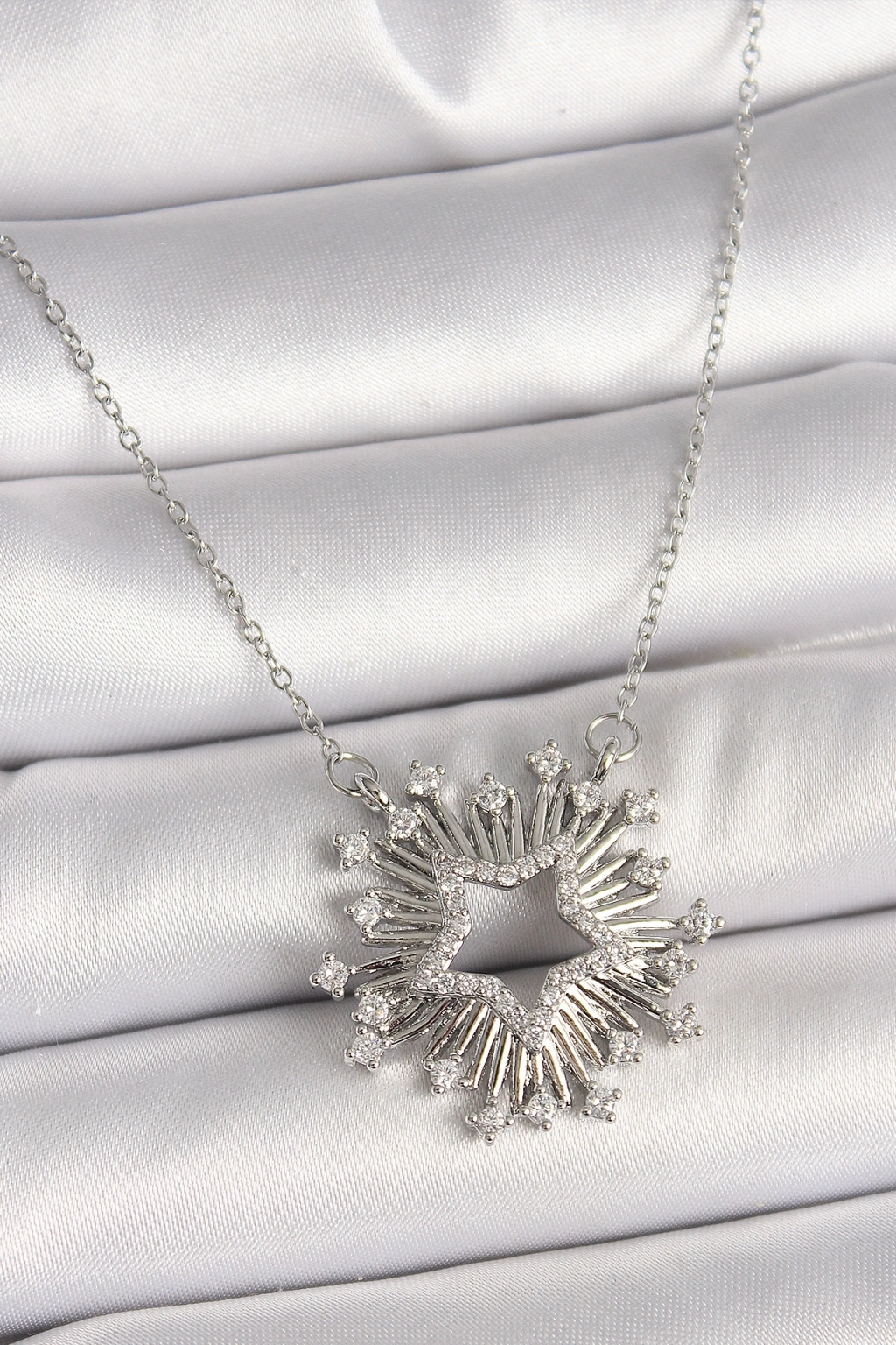 316L Çelik Gümüş Renk Zirkon Taşlı Yıldız Model Kadın Kolye