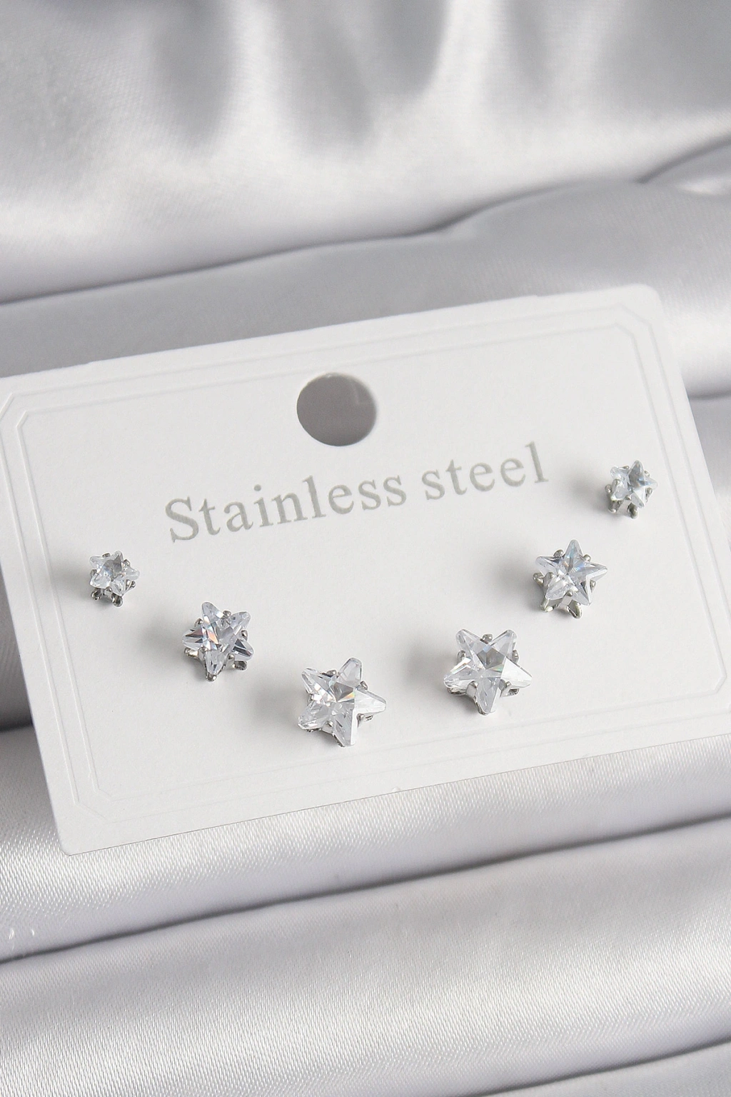 316l Çelik Gümüş Renk Zirkon Taşlı Yıldız Model Kadın Küpe Seti