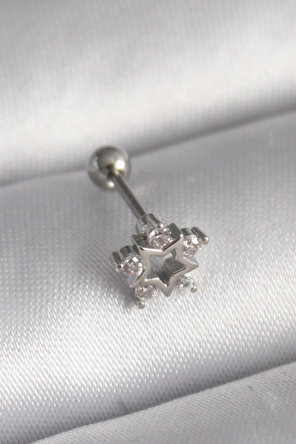 316l Çelik Gümüş Renk Zirkon Taşlı Yıldız Model Tragus Piercing